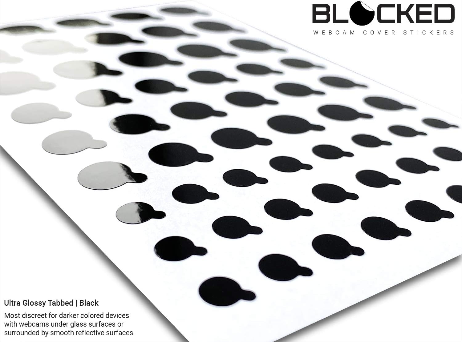 BLOCKED Webcam/Camera Vinyl Covers | 57 TabbedLow-Tack Restickable Webcam Sticker | Multiple Sizes | Black 57-Pack Tabbed (Ultra Glossy)