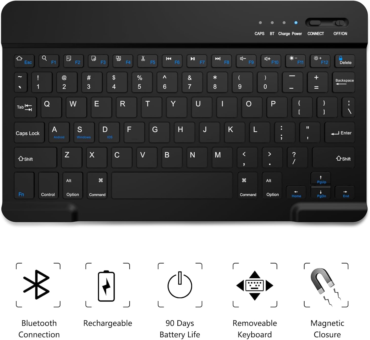 - Built-in Pen Holder & Precise Cutout: This for iPad Air 5th keyboard case built-in Apple Pencil holder, cap and adapter slot to store your Apple Pencil, easily carry your stylus and get it whenever you need it. Precise cutouts allow full access to all ports, speakers, microphone and camera. The built-in rechargeable battery can prolong the battery life, fully charge in 2-3 hours, work for more than 80 hours, and stand by for 120 days