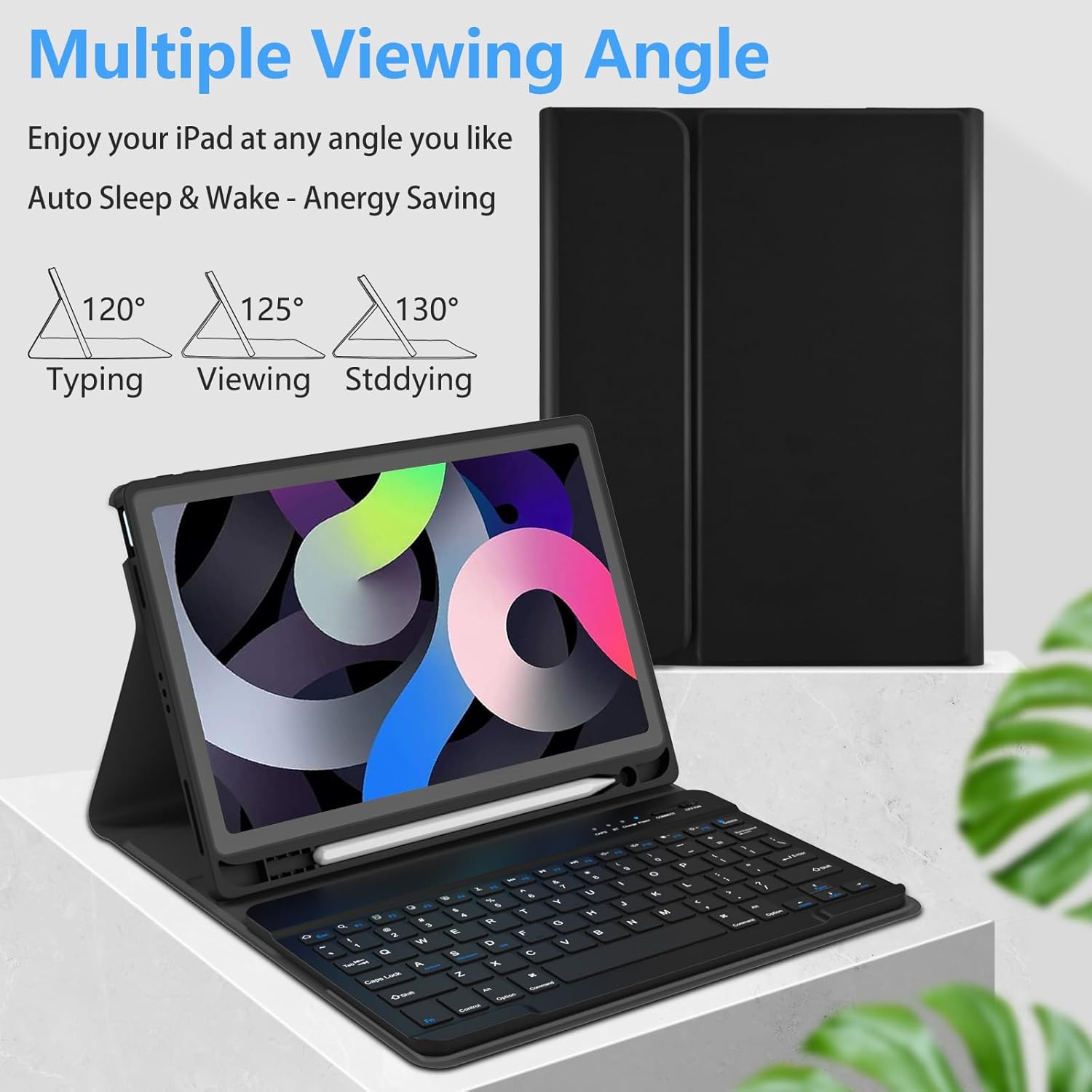- Multiple Viewing Angles: Made with a premium synthetic leather exterior, a secure magnetic closure & a durable interior plastic case that firmly holds a 10.9 or 11 inch. For iPad Air Keyboard Case specially designed 3 indents to support the tablet into three different viewing angles, easily adjust to the most comfortable angle for you, providing you with amazing versatility. Perfect for working, writing or watching videos at office, school and home