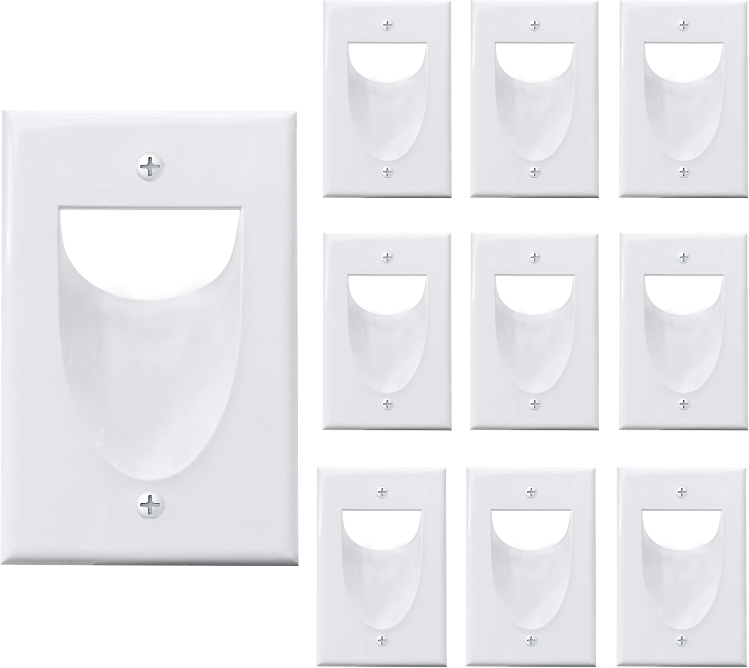 BestMounts - 10 Pack Inner Nose Behind Wall Cable Management TV Cord Hider for Wall Mounted TV - Single Gang Low Voltage Recessed Wall Plates Cable Pass Through for Wires, HDTV, HDMI (White)