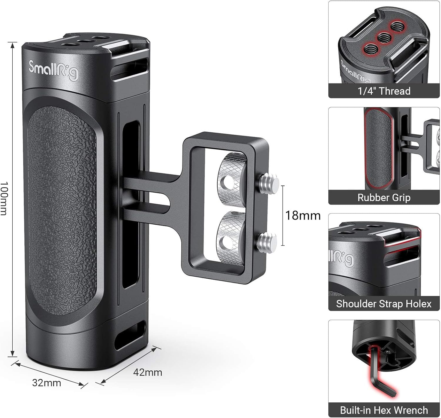 - 【SIDE HANDLE FOR CAMERA CAGE】SmallRig Mini Side Handle 2916 is designed for the cages of mirrorless, digital camera, and other small cameras. Two 1/4"-20 screws are fixed to the side of your camera cage. SmallRig 2916 Any cage featuring two 1/4"-20 threaded holes with 18mm distance on the side, such as SmallRig Cage 2999, 2493, 2087 etc.