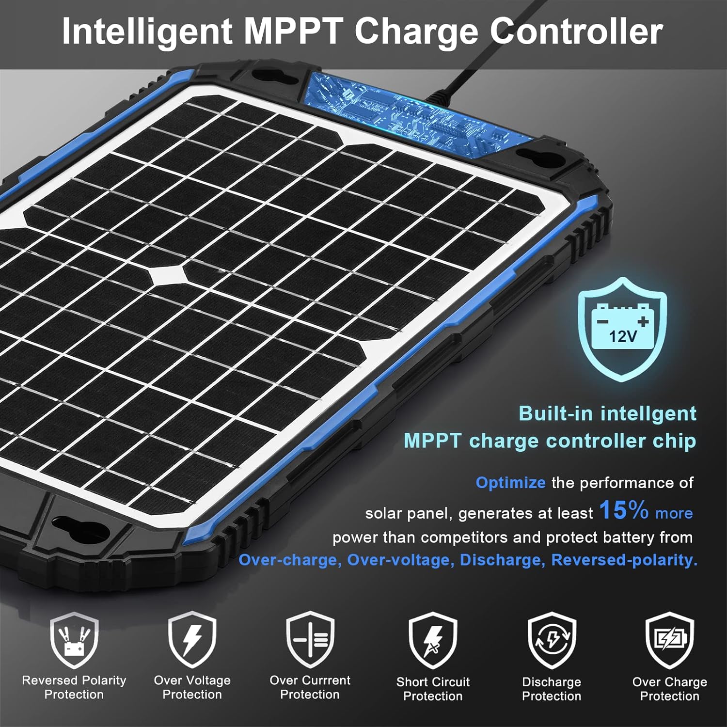 SUNER POWER Waterproof 12W 12V Solar Battery Charger & Maintainer Pro, Built-in UltraSmart MPPT Charge Controller, 12 Volt Solar Panel Trickle Charging Kits for Car Automotive Boat Marine RV Trailer