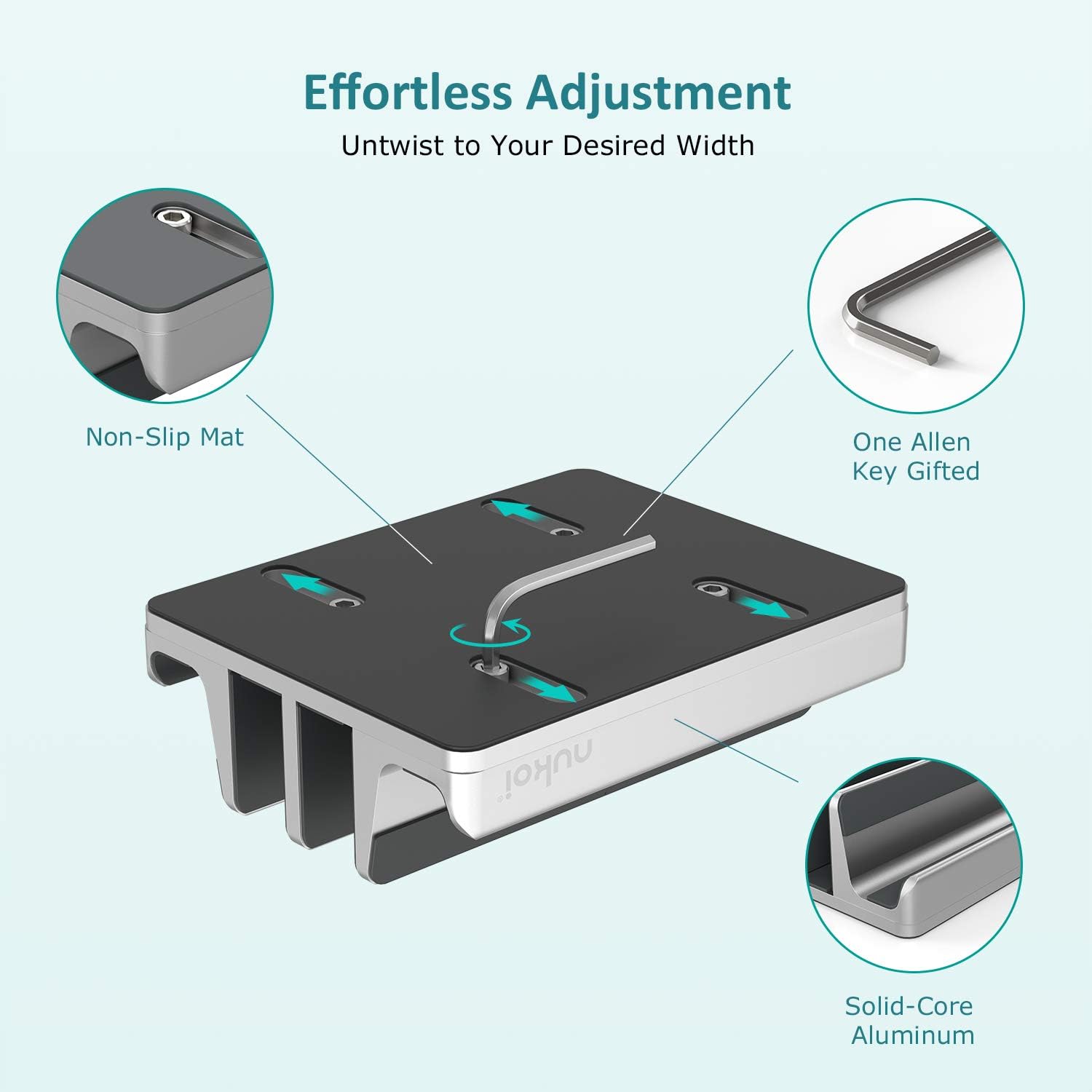 - You Do You - Easy, Adjustable, Smart Vertical Laptop Holder Configurations: Create Your favorite combination - try adding 2 Laptops, 2 Tablets/iphone devices to save 4 to 6 feet; or 1 Laptop + large iPad + cell phone/external hard drive + bluetooth keyboard and pens to declutter your whole desk.