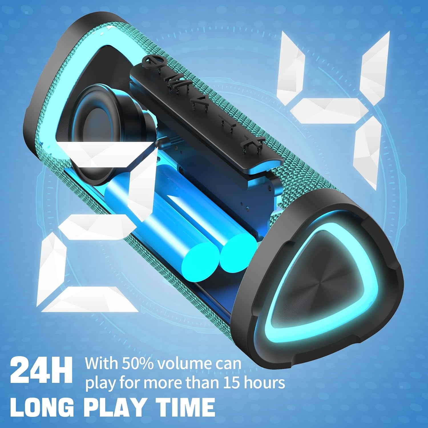 - 【IPX7 STRUCTURE WATERPROOF】: Portable speakers provides strong waterproof protection, durable silicone case and port cover make the speaker have better internal protection, allowing you to enjoy music in a variety of different environments.