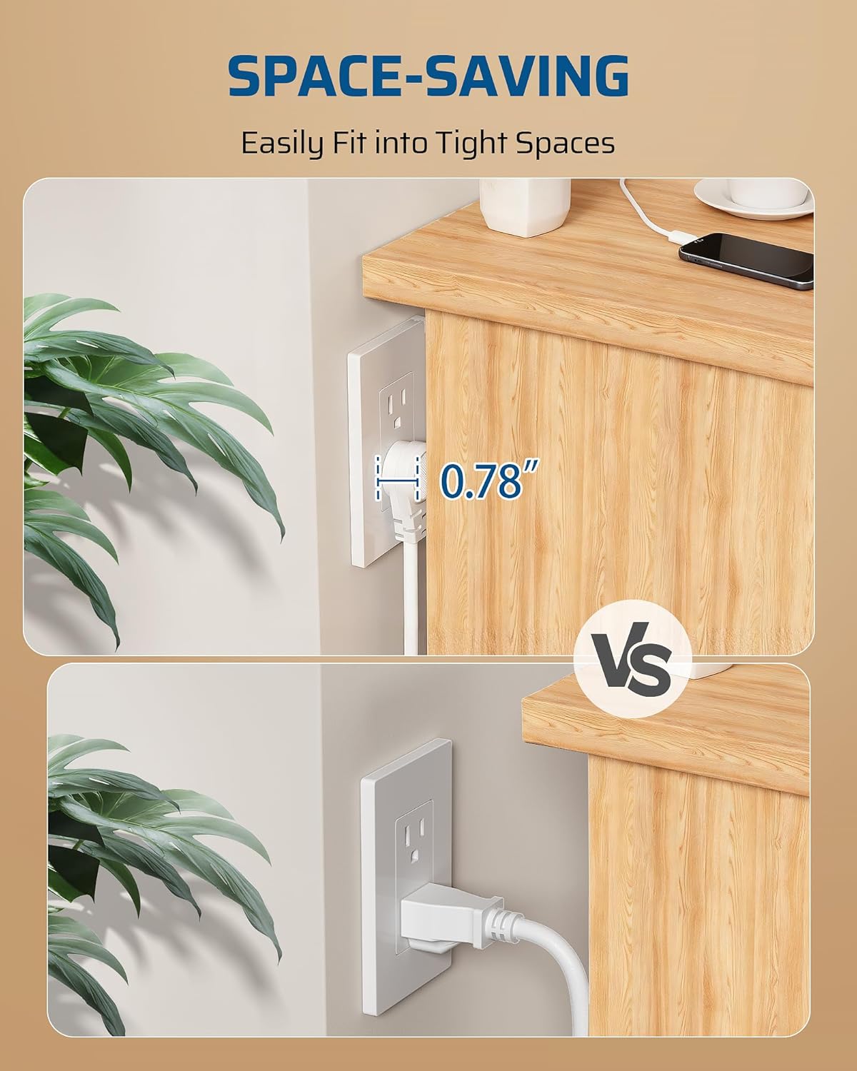 - Angled Flat Plug - the short extension cord comes with 45°low profile plug, perfect for plugging in the outlet without blocking the other one