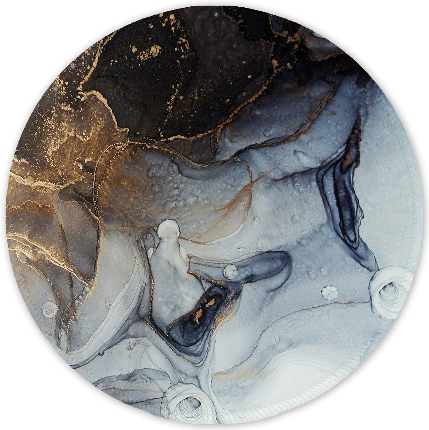 ITNRSIIET Round Mouse Pad with Stitched Edge Premium-Textured Waterproof Non-Slip Rubber Base Desktop Protection Mat Diameter 8.7 inches, Ink and Wash Marble