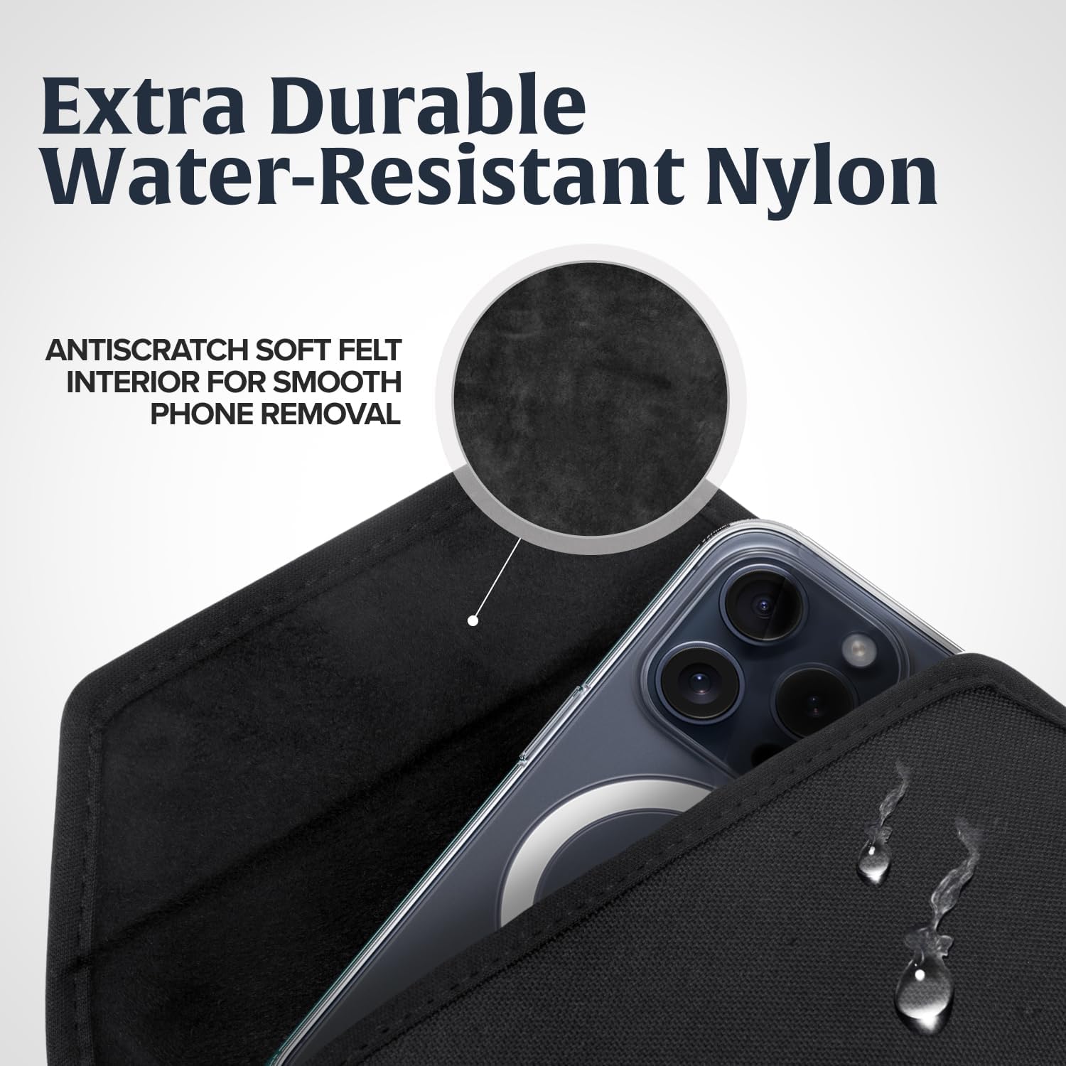 Turtleback Belt Clip for iPhone 16 Pro, 16e, 15 pro 14 Pro 13 Pro -Small- Fits w/Slim MagSafe Style Cases - Premium Black Nylon, Horizontal Belt Holder, Magnetic Closure, HD Rotating Belt Clip