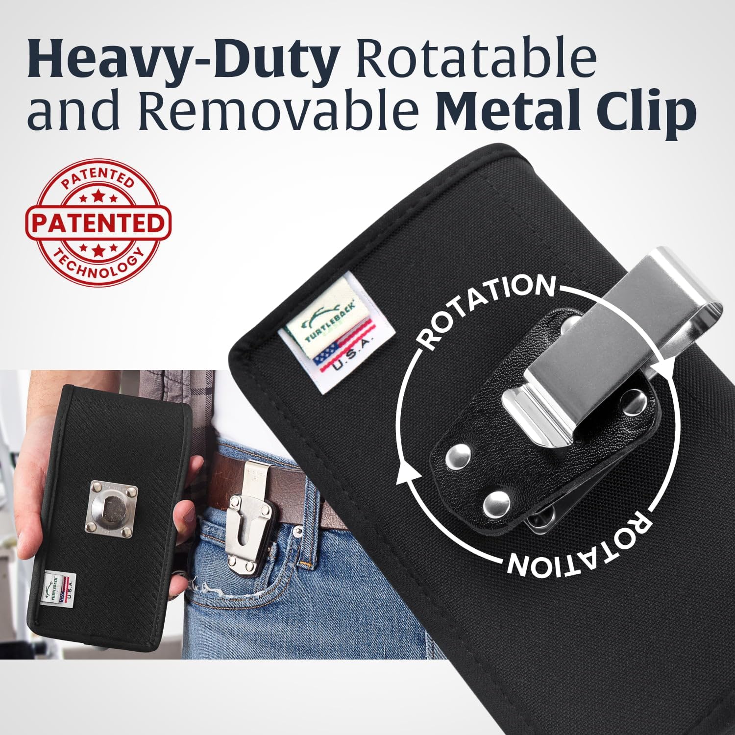 - DESIGNED AND BUILT IN THE USA: The Turtleback premium phone holster is crafted from high-quality reinforced nylon, laminated with a proprietary durable backing material to provide superior resistance against dirt and water. Built for strength and style, this iPhone belt holder for men combines long-lasting durability with aesthetic appeal and an improved tactile feel. This phone holster fits horizontally on your belt and features a secure, rotating ratcheting belt clip for reliable everyday carry. Whether you prefer a rugged nylon holster or a sleek nylon phone case, Turtleback delivers reliability and craftsmanship you can trust. Proudly Designed and Built in the USA since 2001.