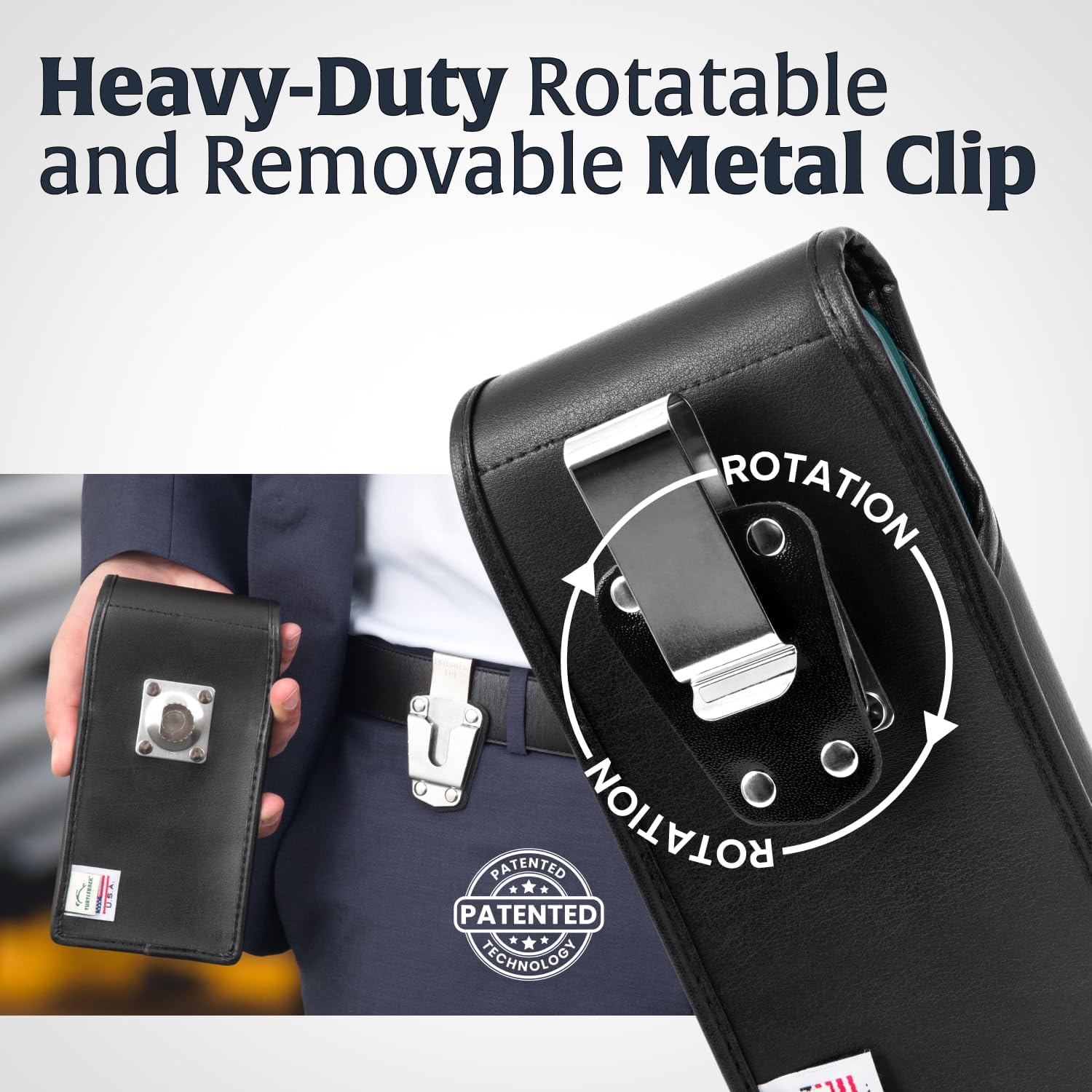 - DESIGNED AND BUILT IN THE USA: The Turtleback leather phone case is crafted from premium imported leather, offering a sleek look and durable feel that complements any style. This phone holster fits vertical on your belt and features a secure, rotating ratcheting belt clip for reliable everyday carry. Whether you need a rugged iPhone belt holder for men or a stylish holster for work, we have you covered. Turtleback has been proudly designing and building cases in the USA since 2001.