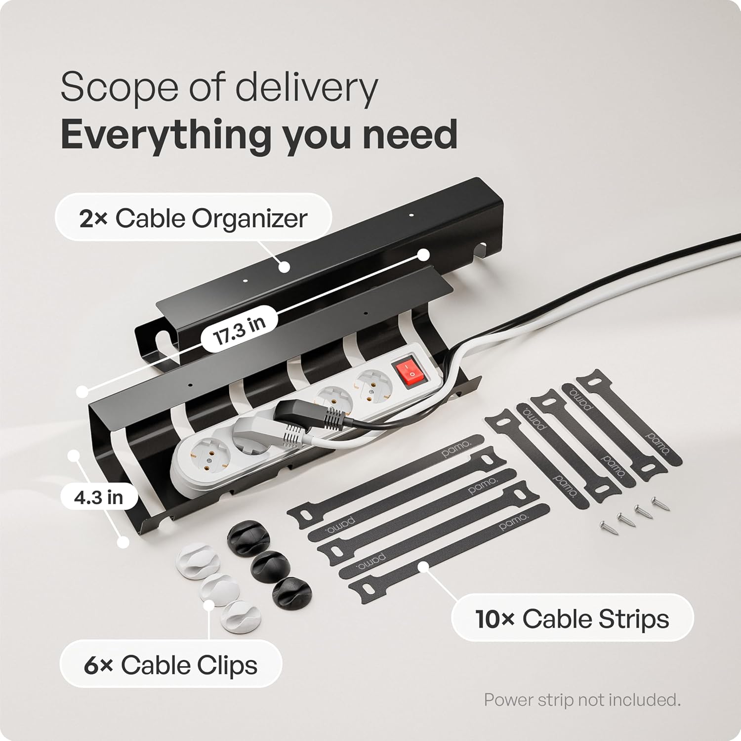 PAMO Cable Management Under Desk for Easy mounting Under-Table I Set of 2 - with 10X Cable Ties I Desk Organizer for Office/Home Office Table Thoughtful Cable Tray Holder