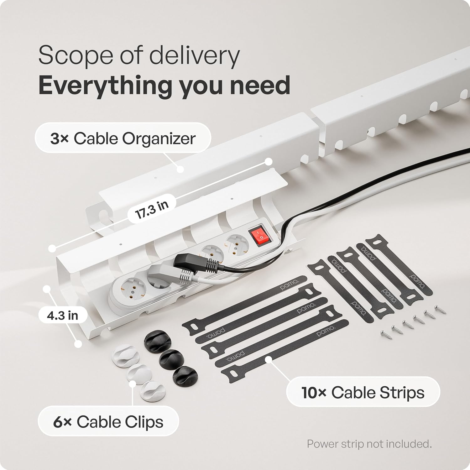 PAMO Cable Management Under Desk for Easy mounting Under-Table I Set of 3 - with 10X Cable Ties I Desk Organizer for Office/Home Office Table Thoughtful Cable Tray Holder