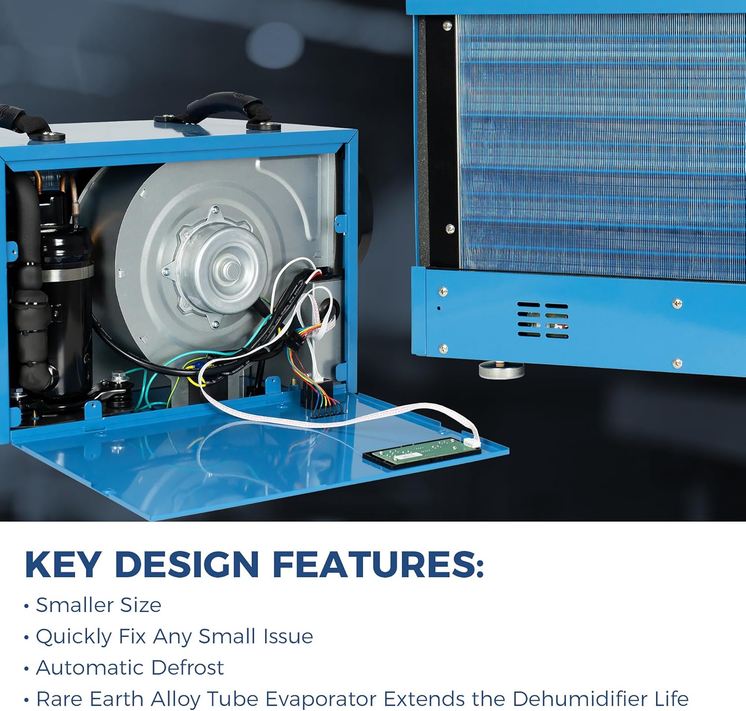 - Same Fit for Crawl Spaces: We designed this professional dehumidifier with the modern consumer in mind, smaller size, compact design, rugged handle, easy and safe to transport from job to job, and even from downstairs to upstairs. All special features make it the best for crawlspace, basement, and commercial applications, auto defrosting system, optional remote control system, strong as the tank, Low-temperature operation, cETL