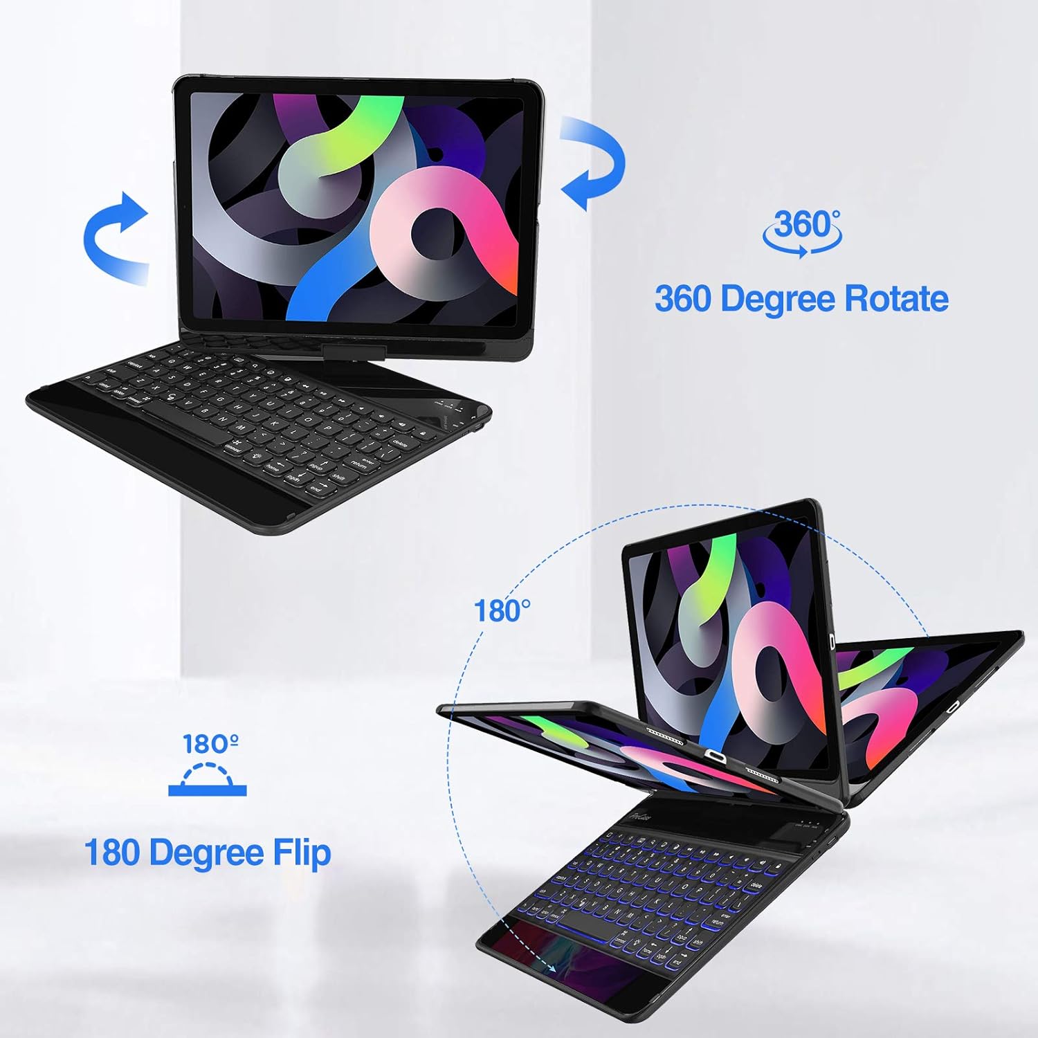 ProCase 360° Rotation Keyboard Case for iPad Air 11" (M3/M2) 2025/2024/Air 5th/4th 10.9" 2022 2020/ iPad Pro 11" 2022 2021 2020 2018, Wireless Keyboard with 7 Colors Backlit, Auto Sleep/Wake -Black