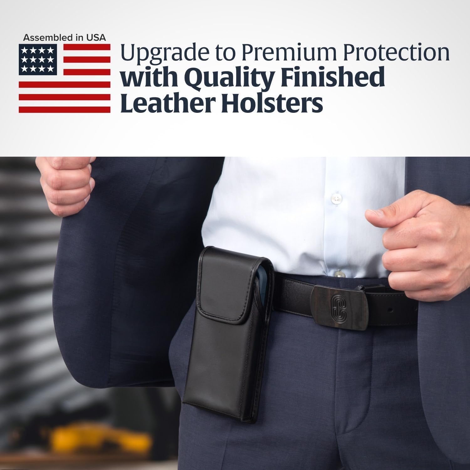 - PATENTED HEAVY-DUTY BELT CLIP: This phone belt holder features a specially designed patented rotating rtcheting clip for a secure carry. The removable, rotatable clip locks with a D-ring mechanism, gripping tightly to your belt and keeping your phone holster secure while on the move. A durable choice in cell phone cases & covers, this stylish iPhone belt holder for men is a secure carry solution for everyday use.