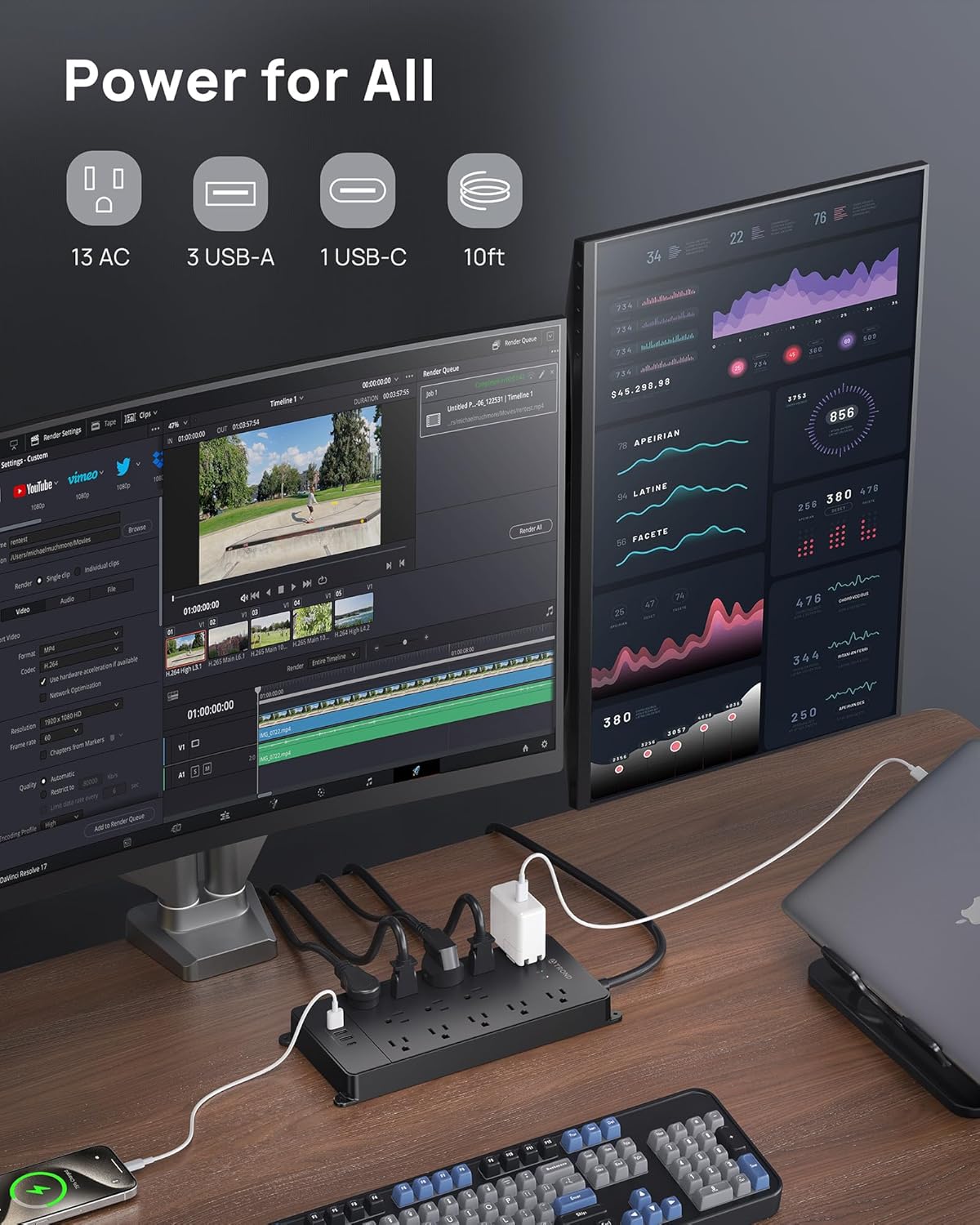 - Safety assurance - It’s ETL listed, and made of the top-grade ul94 v-0 flame-retardant material. With 4000j surge protection, it safeguards your TV, computers, phones & office equipment from potentially damaging power disturbances, creating peace of mind