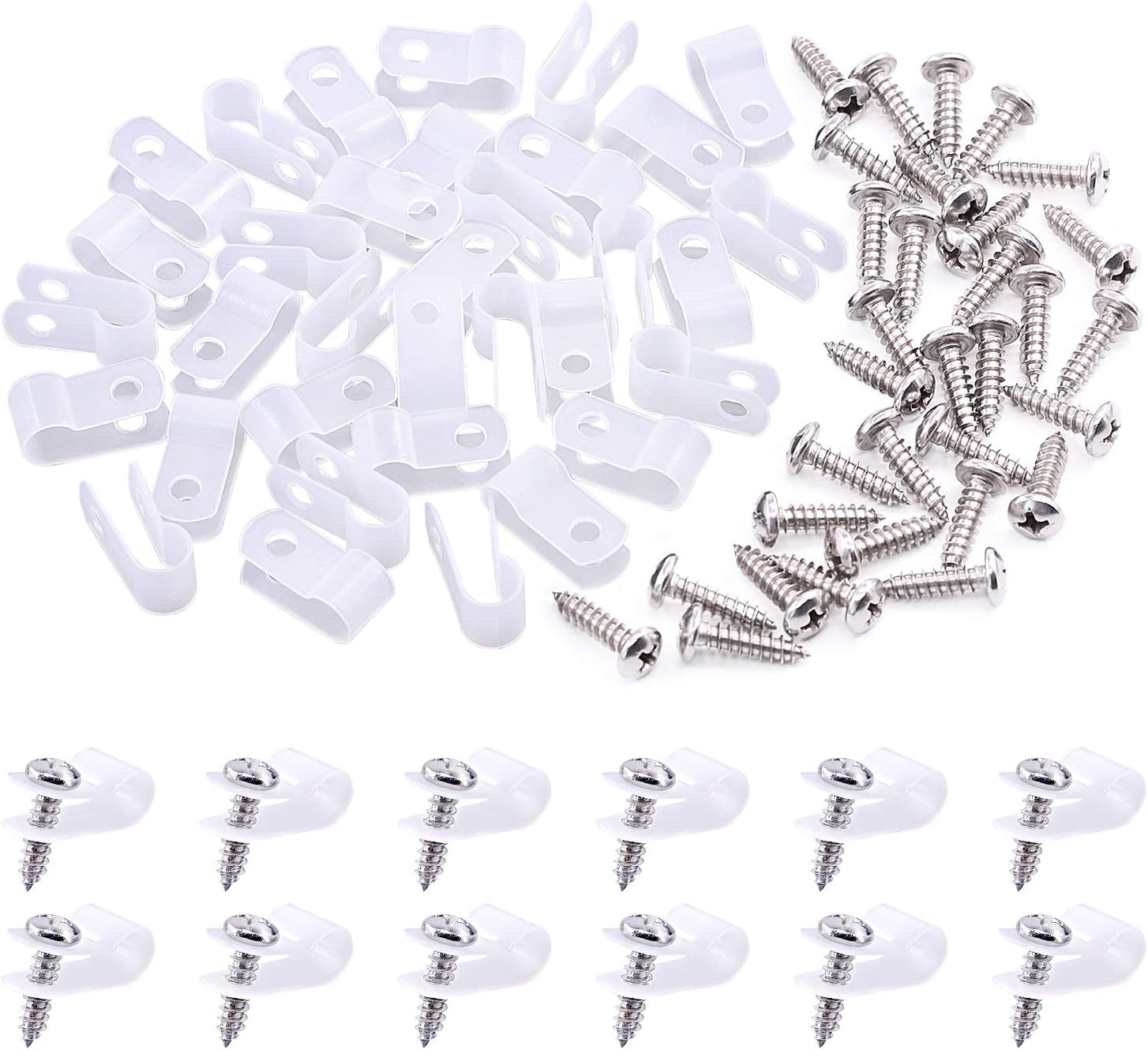 Swpeet 120 Pack White 1/4 Inch Nylon Plastic R-Type Cable Clips Clamp Kit, Nylon Screw Mounting Cord Fastener Clips with 120 Pack Screws for Wire Management (1/4 Inch, White)