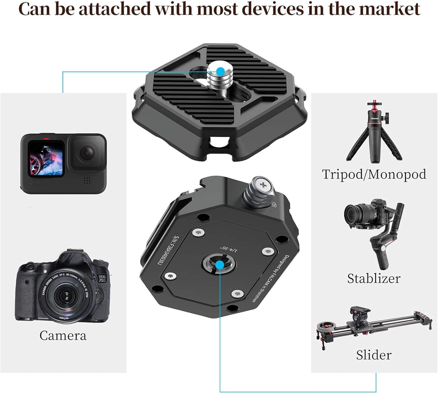 - F38 Quick Release Plate Kit: Ulanzi F38 Quick Release Plate allows super quick switch between different devices like tripod, stabilizer, gimbal, monopod, slider etc, Helps getting rid of hassle with unscrew and disassembly. A must have QR kit for professional photographers