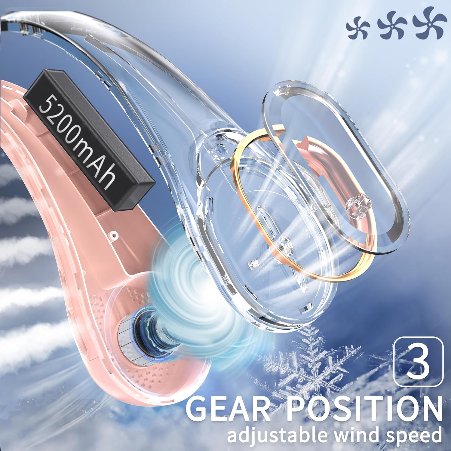 - 【Upgraded Air Volume 】Neck Fan new upgrade,360-degree surround type,the wind is increased by 70%,the three-speed wind is adjustable,the 60 turbine blades are strong and comfortable,and it can cool quickly in 3 seconds
