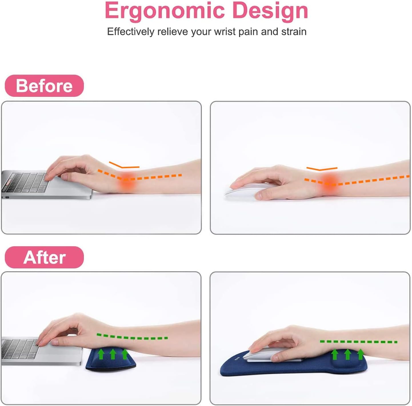 - Ergonomically designed with breathable/durable neoprene cloth and raised memory foam. Efficient for easy typing & pain relief. Offers soft support to relieve pressure and pain of your wrist, keep your wrist in a natural and comfortable state.