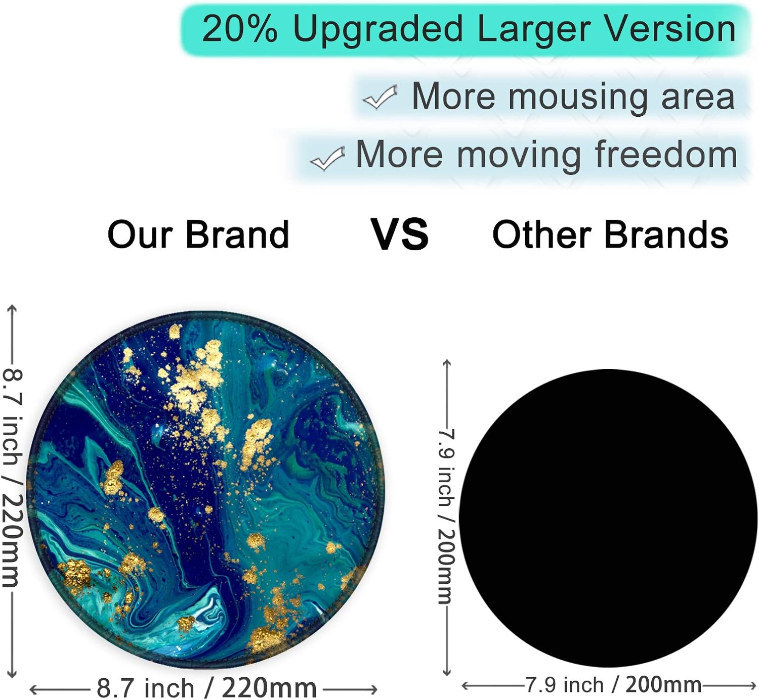 ITNRSIIET Round Mouse Pad with Stitched Edge Premium-Textured Waterproof Non-Slip Rubber Base Desktop Protection Mat Diameter 8.7 inches, Blue Green Marbling