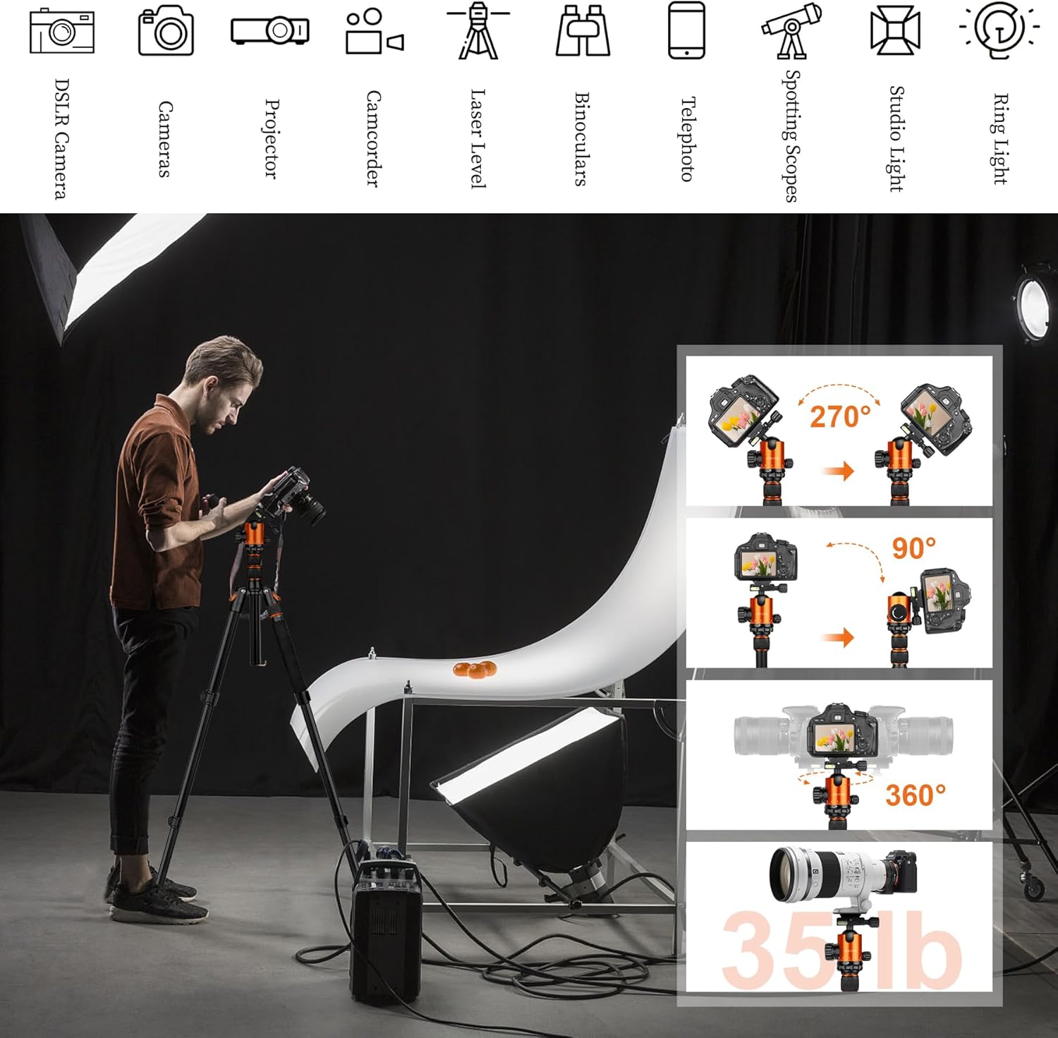 JOILCAN Tripod for Camera, 81" Aluminum Camera Tripod, 83" DSLR Tripods & Monopods, Heavy Duty Travel Tripod for Binoculars Spotting Scope Telescope, Professional Complete Tripod Units, Payload 35lb