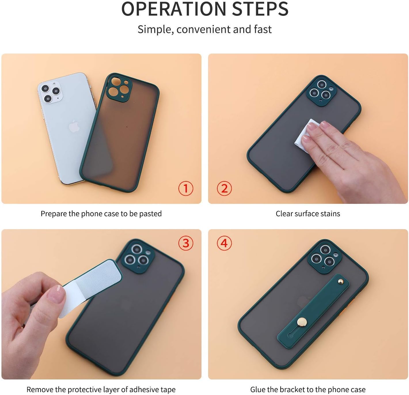 - Easy installation: The loopy case is very easy to install, no tools are needed, just tear off the anti-stick paper, fixed on the mobile phone case, finally push the mobile phone case bracket upward, the whole operation is completed, so easy to use.