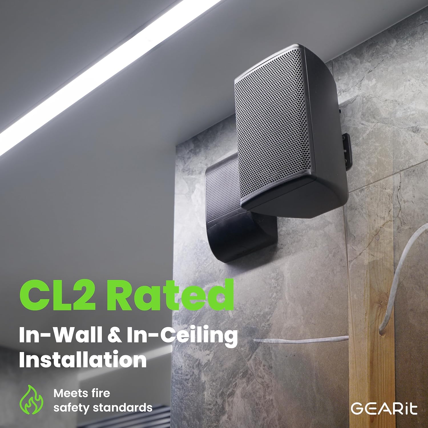 - FOR IN WALL, IN CEILING SPEAKERS - Our GEARit CL2 speaker wire cable comes in 75ft, 100ft, 125ft, 150ft, 200ft lengths and white colored trailer wire. Search on Amazon for GEARit 14 AWG Speaker Cables to find all our 14 ga speaker wires. All GEARit indoor in wall speaker copper wires come with a limited lifetime warranty.