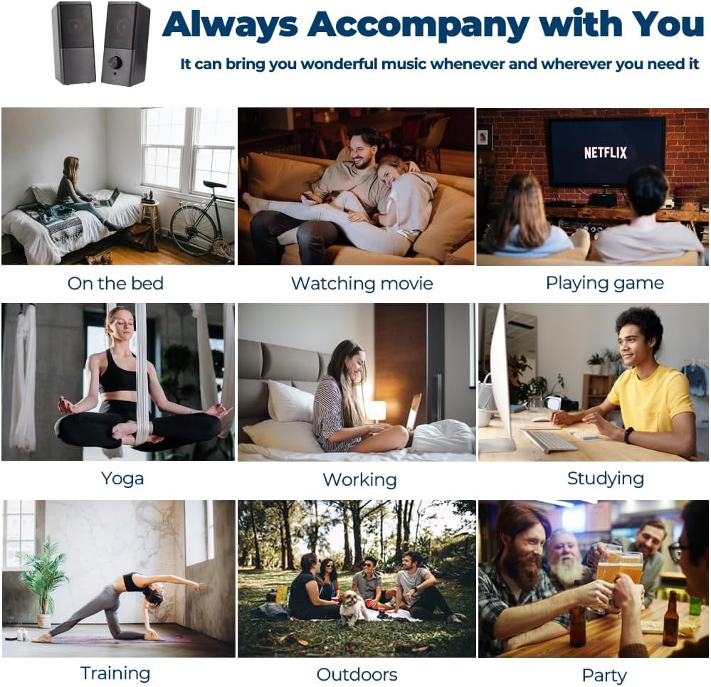 - Super Sound Quality - Unique subwoofer technology and the latest material are adopted and excellent in high-performance precision drive and 360 surround sound design. The sound quality is high and it is a gem that excels in the low range. 2.0 Channel stereo speakers, enjoy the best stereo effect!