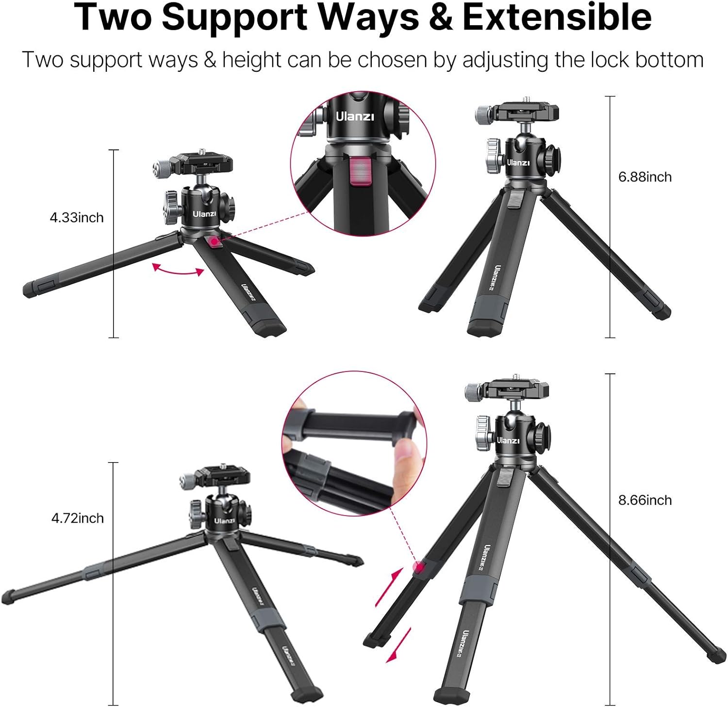 - 【Portable Compact Desktop Mini Tripod】The tripod has 2 sections adjustable-height leg. 0.69lbs/317g weight & 8.3“/212mm length, supre lightweight & small design for easy portability. PICTRON tabletop tripod has a compact & intelligent shape which can fit in your pocket and bag, making it the perfect accessory for travelling, vacation or outdoor use.