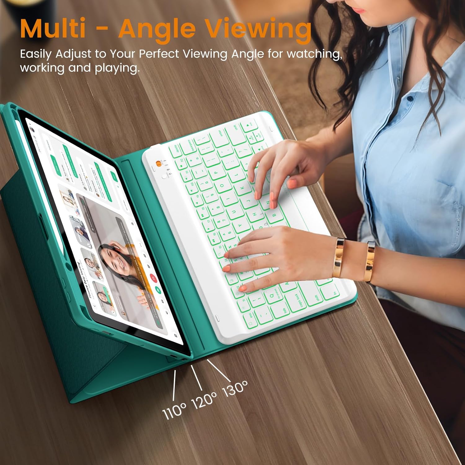 OYEEICE for iPad 9th Generation Case with Keyboard 10.2'' - 7 Color Backlit Wireless Keyboard Cover with Pencil Holder for iPad 9th/8th/7th Gen 10.2 inch, iPad Air 3rd Gen & iPad Pro 10.5" - Teal