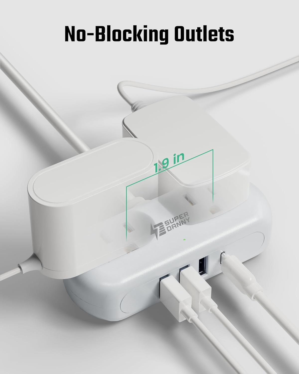 - 【Compact & Portable】SUPERDANNY travel power board has a mini size of 4.29 x 1.69 x 1.10 inches (weighs 8 oz), small enough to take to work or school with enough outlets to power up your electrical devices.