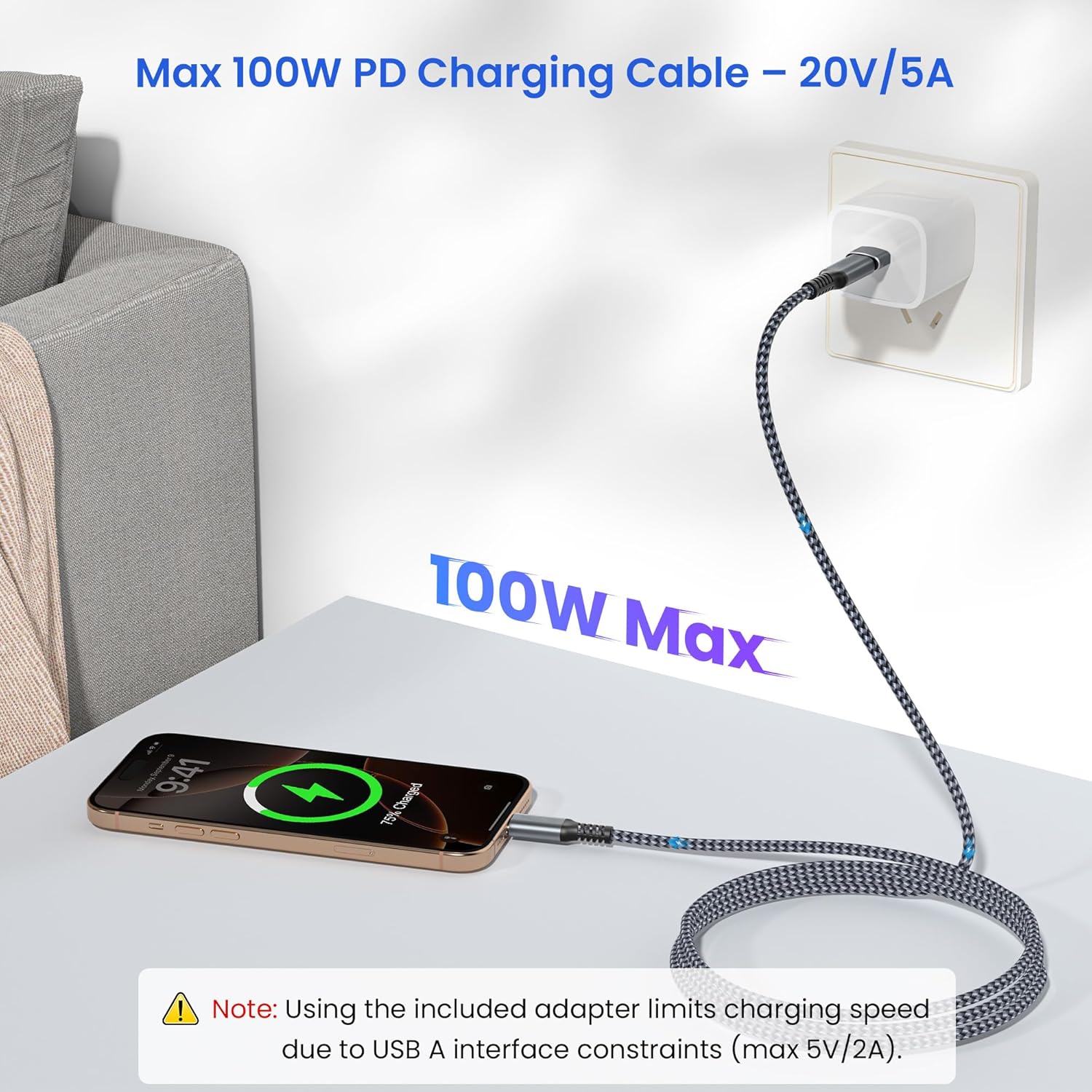 - Perfect Pairing: The real magic happens when you combine the USB-C 100W charging cable with the USB-C adapter. Not only can you charge your devices at lightning speed, but you can also enjoy the freedom of using almost any peripheral or accessory you desire. It's like having the best of both worlds in one compact package.