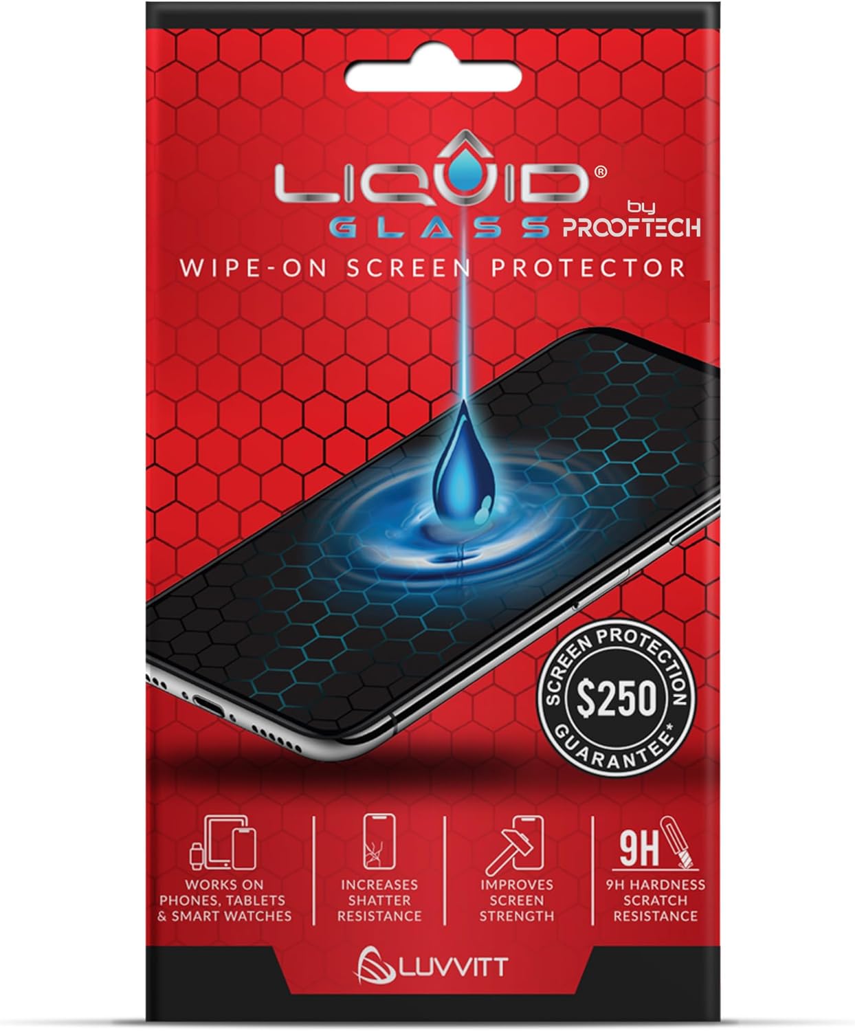 - Liquid Glass by ProofTech is an advanced technology, invisible, wipe-on screen protector that bonds to the glass of your device offering enhanced scratch, moisture, and impact resistance.
