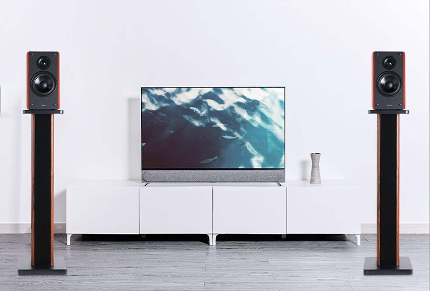 - 【WOOD GRAIN LEATHER】Our bookshelf speaker stands are made of high quality medium density fiber wood board to minimize resonance which have excellent wood grain leather surface. Finished with premium furniture-grade paint that will not crack, chip, or peel.
