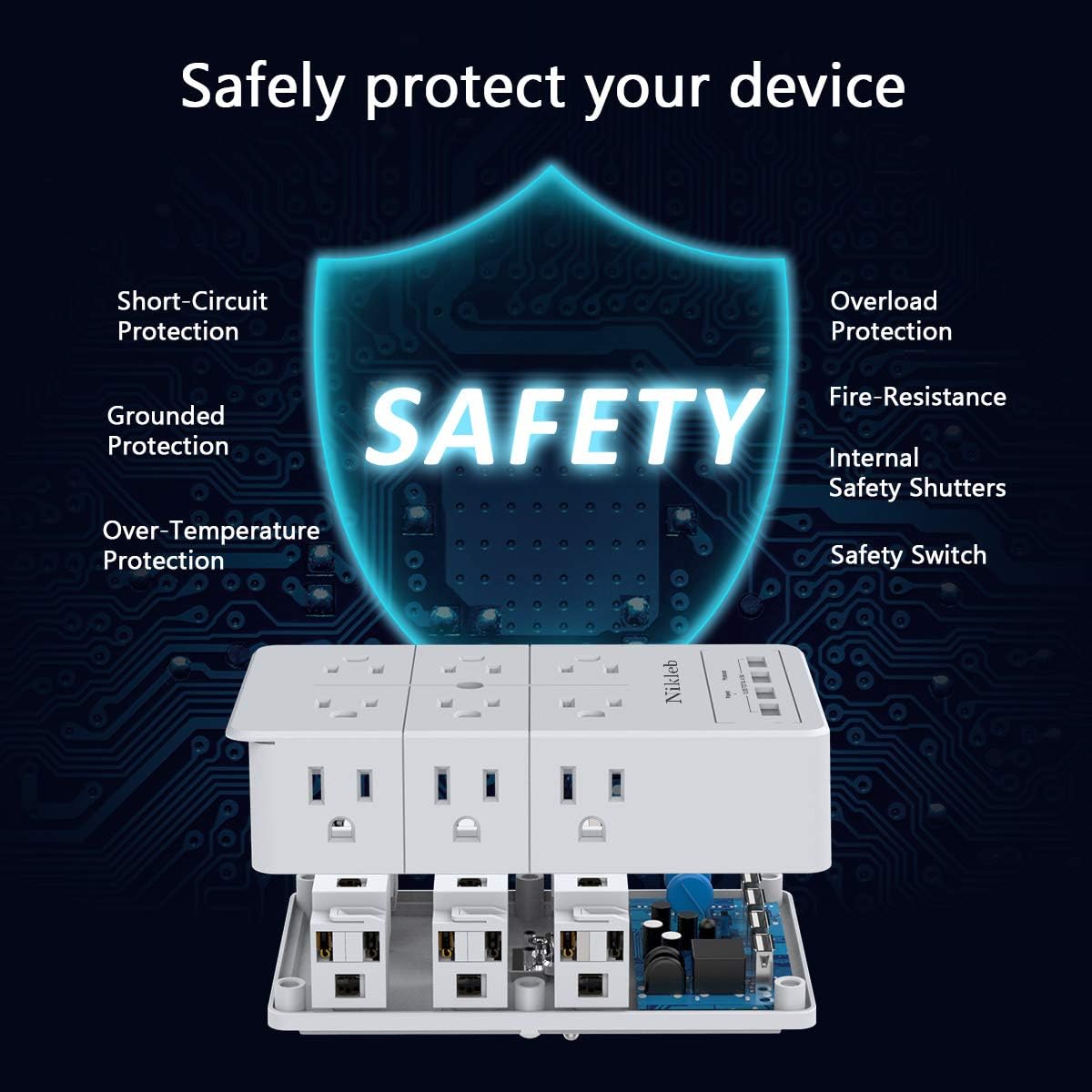 - Multiple outlet wall plug safety warranted: Fireproof material, surge protection 1080J plus grounded protection, overload protection, short-circuit protection, over current protection, over-voltage protection and overheating protection.