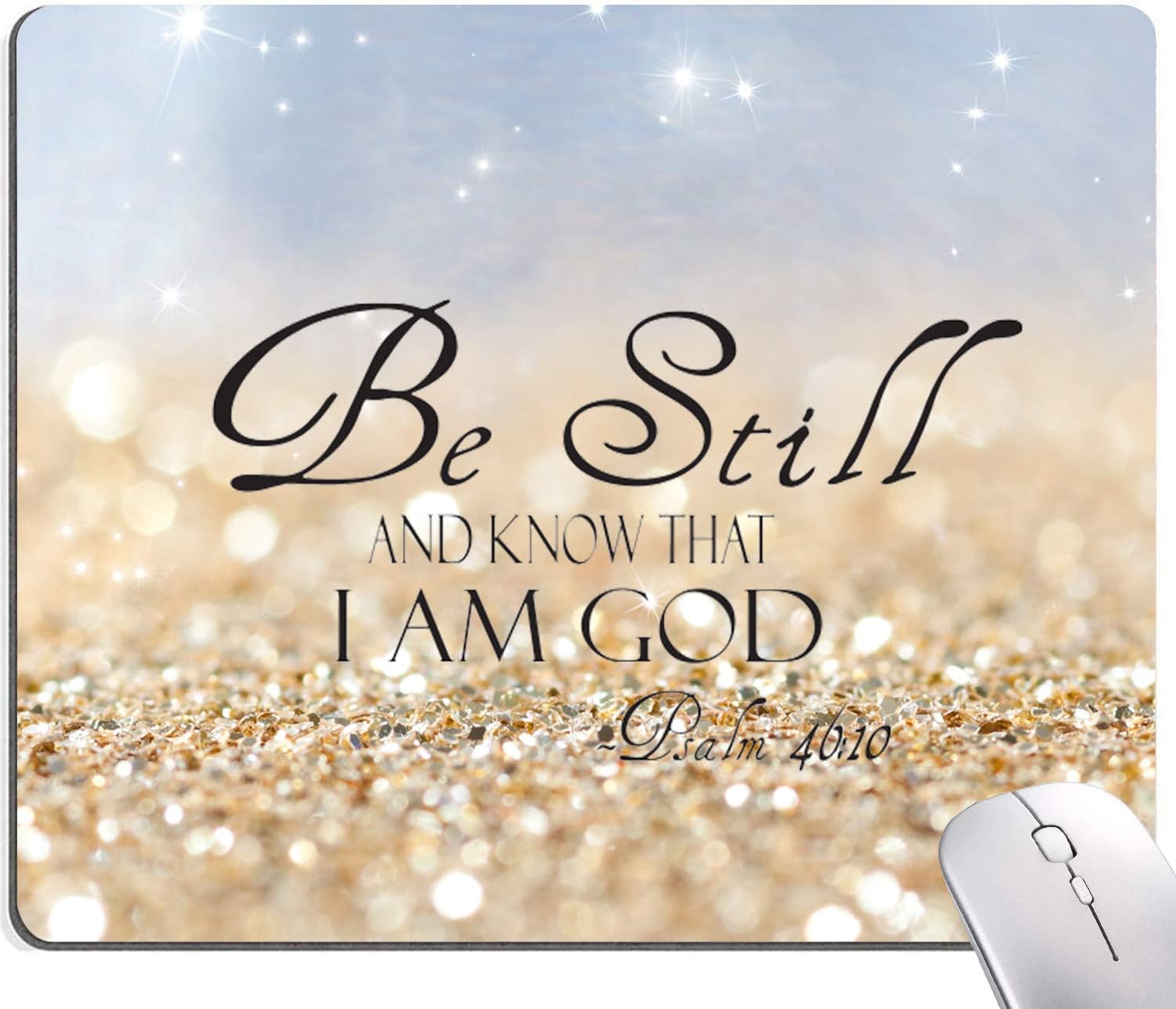 Christian Bible Verses Square Waterproof Mouse Pad Non-Slip Rubber Base MousePads for Office Laptop, 9.5"x7.9"x0.12" Inch(Be Still)