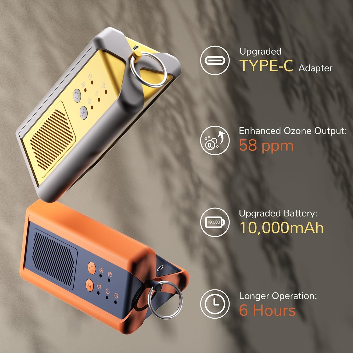 - HIGH CAPACITY: Best used in spaces up to 500 sq ft, the 1,000mg/h ozone output can run up to 4 hours on a full charge to remove tough odors and harmful particles in small areas like your car, office, bathroom, pet room, and more.
