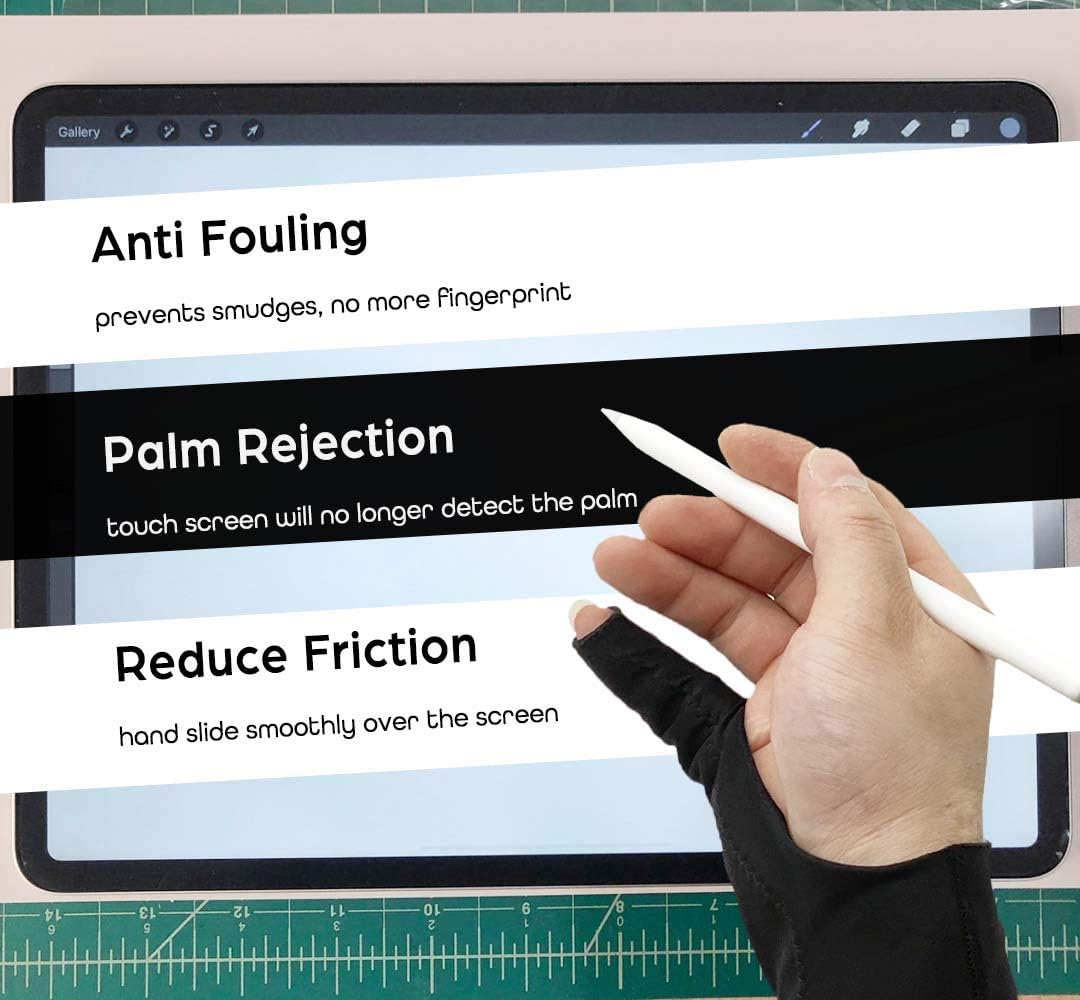 - PALM REJECTION GLOVE - AKX artist glove is designed with padding patch, which effectively prevent the capacitive touchscreen detecting the palm, no more unwanted dots and strokes caused by hand touches.