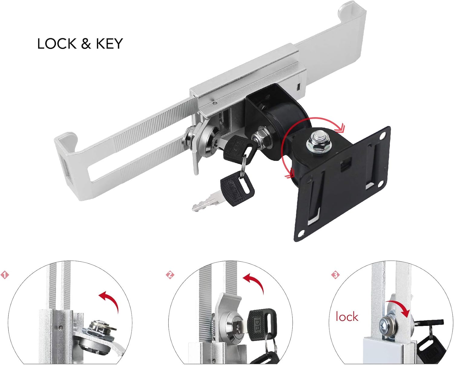 - ANTI-THEFT SECURITY: Strong and stylish aluminum kiosk, predrilled holes in base for secure Wall or installation. lock & Key keeps tablets secured inside the fixed frame, the locking protects tablet from theft.
