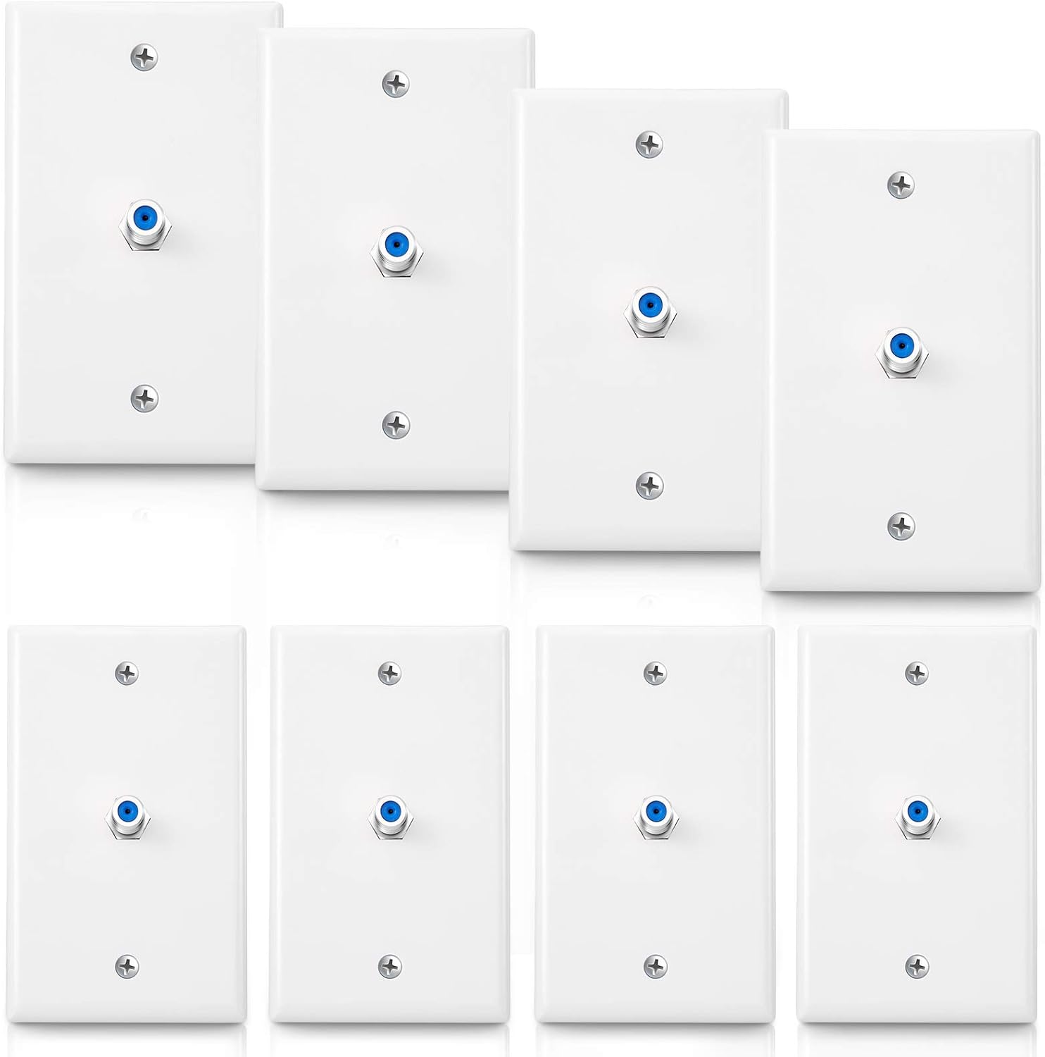 Weewooday 8-Pack White Single Gang F Connector Coax Wall Plates (Blue, 1-Port)