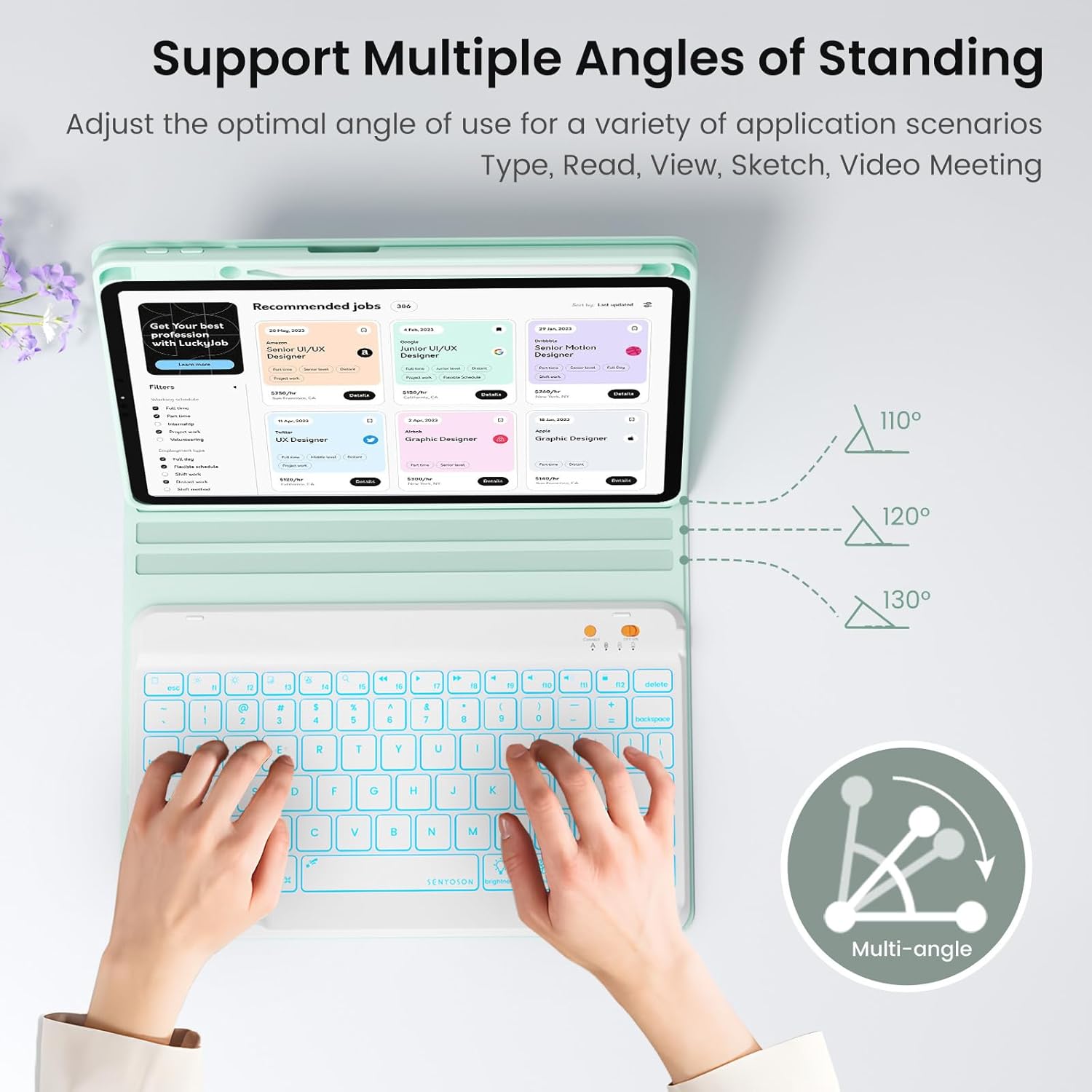 - ✅【Colorful Backlit Keyboard & Hybrid Shockproof Protective Cover】Optional backlight mode and 7 vibrant colors make typing fun and easy in the dark. Scissors mechanical keyboard feels quiet and smooth. The protective case inner layer is of honeycomb grid pattern cushion that releases more 80% hotness than other iPad cases, prevent overheating to extend your iPad life and maximizing screen protection.
