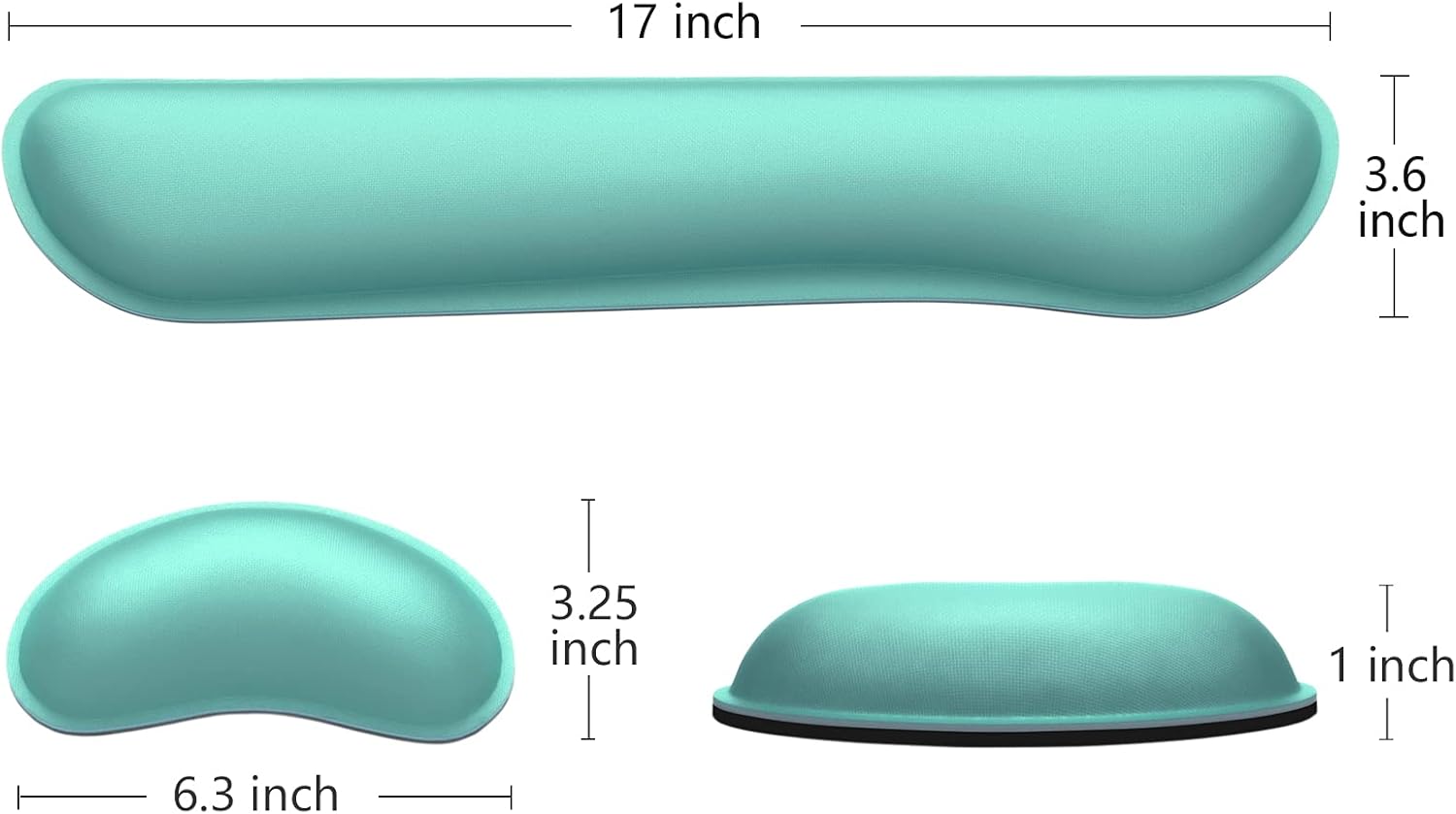 - Enlarge Thicken Size:2-in-1 wrist rest set to provide double delighted experiences and save your time in purchase them separately. 17*3.6*1 inch keyboard wrist rest pad and 6.3*3.25*1 inch mouse wrist pad offers more support to your wrist