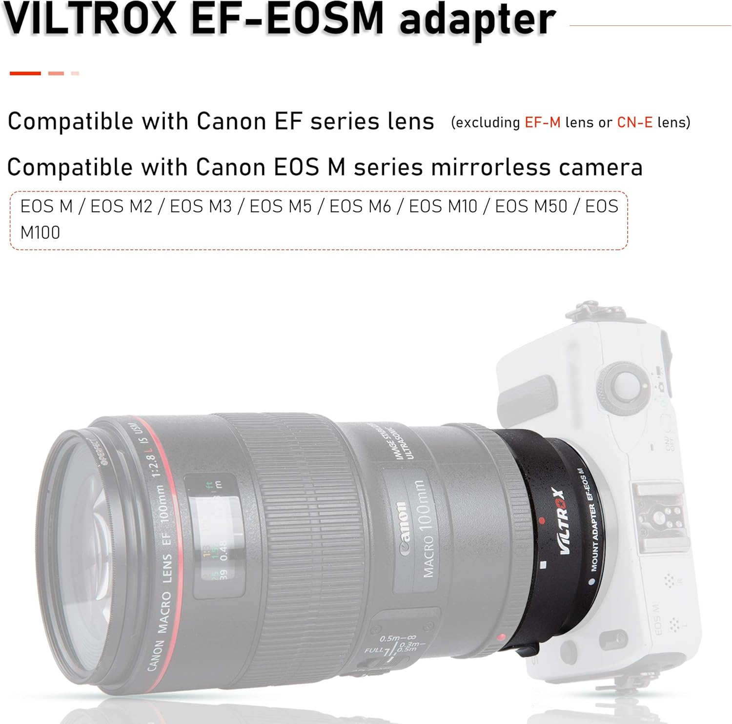 VILTROX EF-EOS M Mount Camera Adapter,Autofocus Lens Converter Ring,EF-M Lens Adapter Compatible with Canon EF/EF-S Series Lens/Canon EOS M Series Mirrorless Camera EOS M1 M2 M3 M5 M6 M10 M100