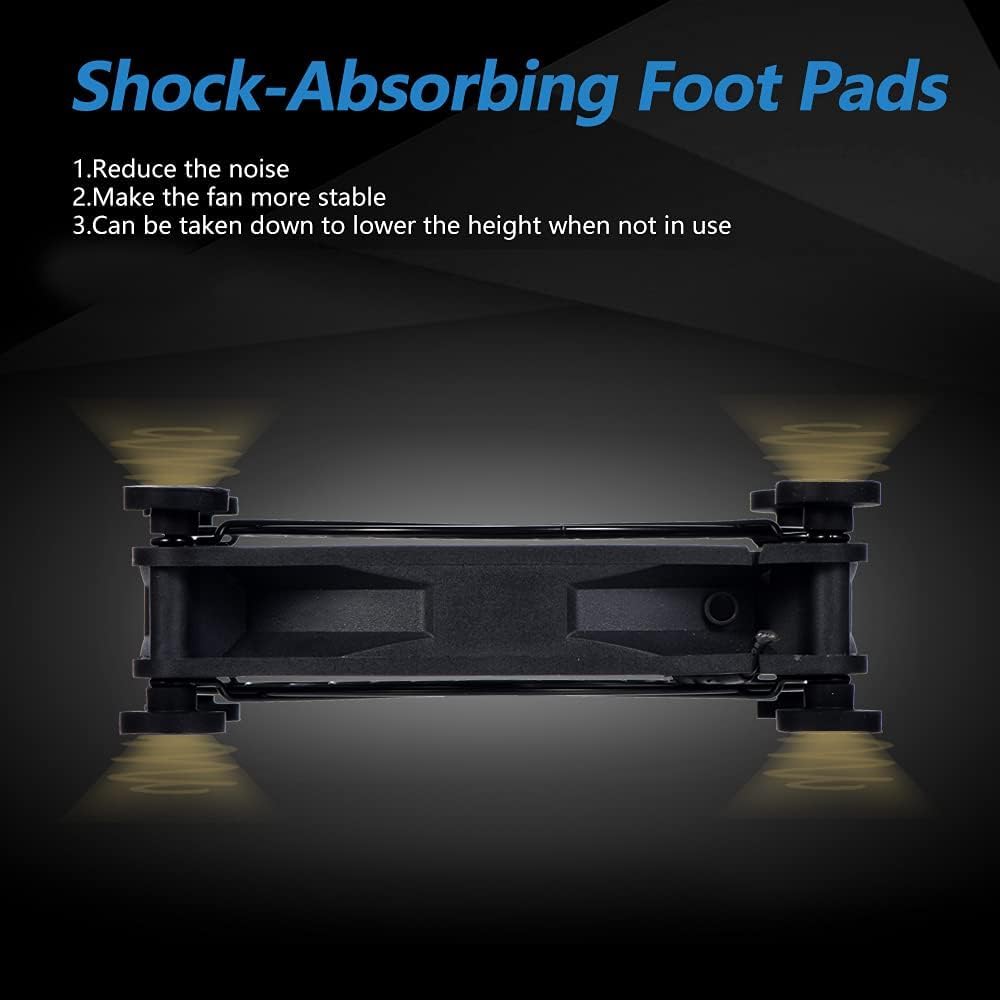 - Dimension: 5.7” X 5.7” X 1.81”. Shockproof foot pads can make the fan lay flat or upright.