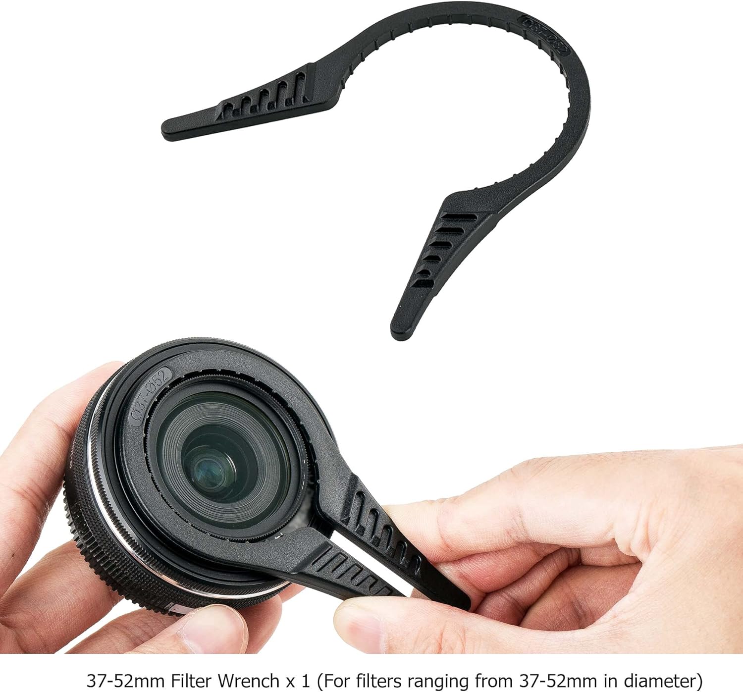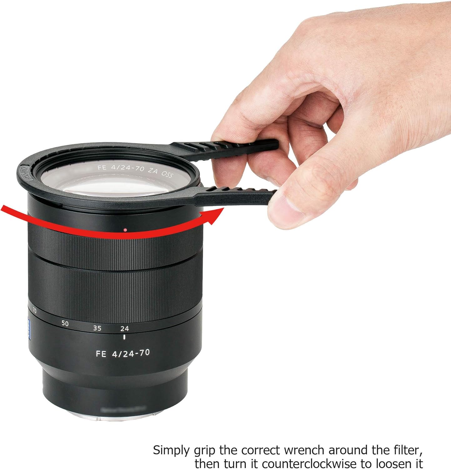 - Universal: Filters ranging from 37mm-95mm in diameter. Our different sizes of Camera Lens Filter Wrench are fully compatible with all diameter filters. One for 37mm-52mm, one from 55mm-72mm, and another from 77mm-95mm