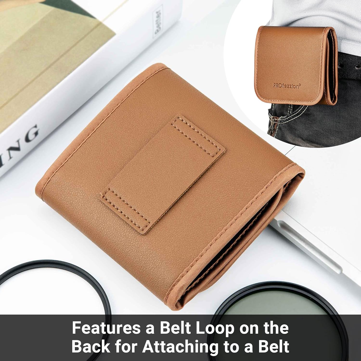 PROfezzion 3-Pocket Foldout Filter Pouch for 82mm Camera Lens Round Filter, Shock Resistant & Anti Scratch Photography Filter Case, Filter Carry Case with Microfiber Cleaning Cloth