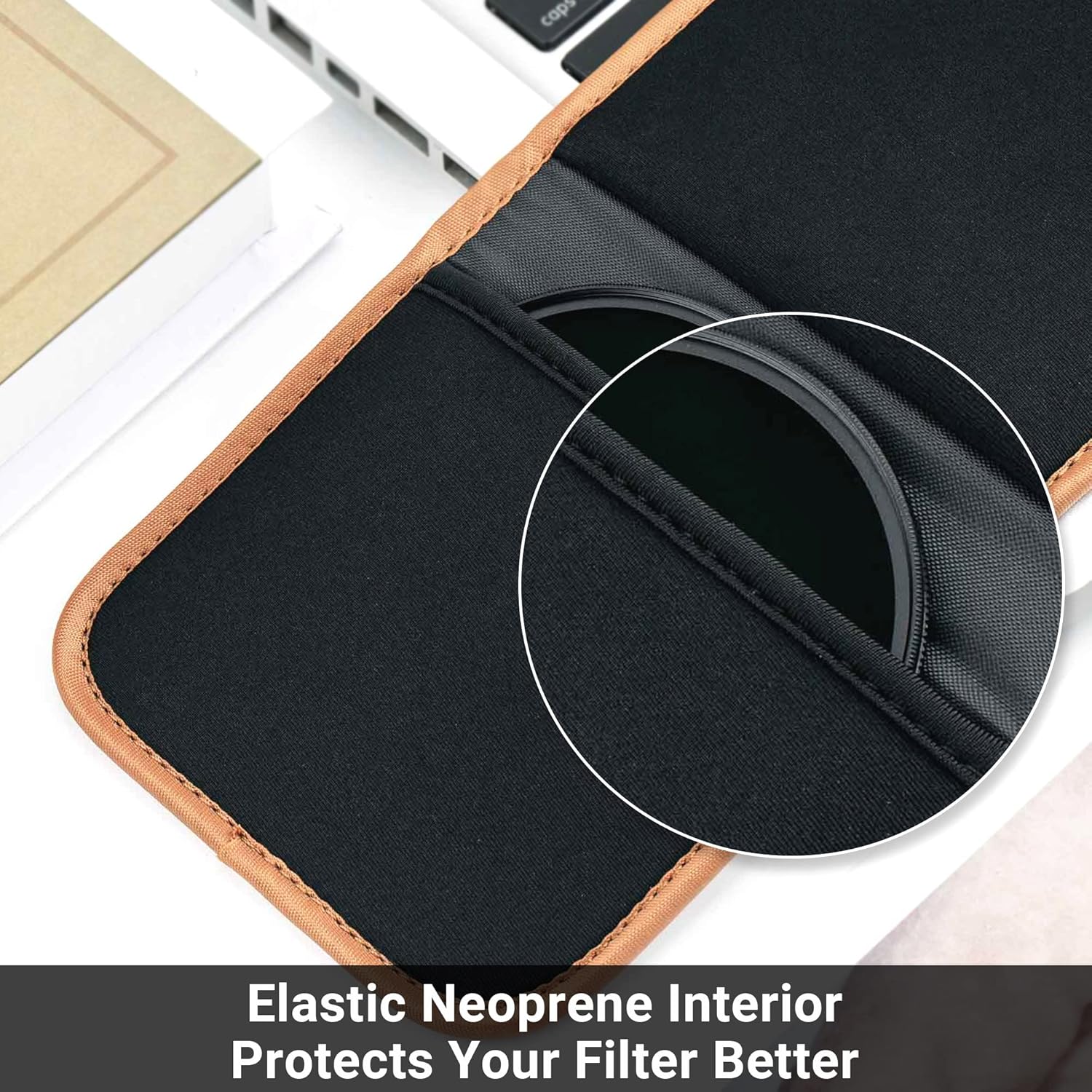 - Full Protection: The exterior of the lens filter pouch is made of high-quality PVC material, sturdy and durable. Moreover, the elastic neoprene interior of the camera lens filter carry case features a soft lining to protect your filter from shock and scratches