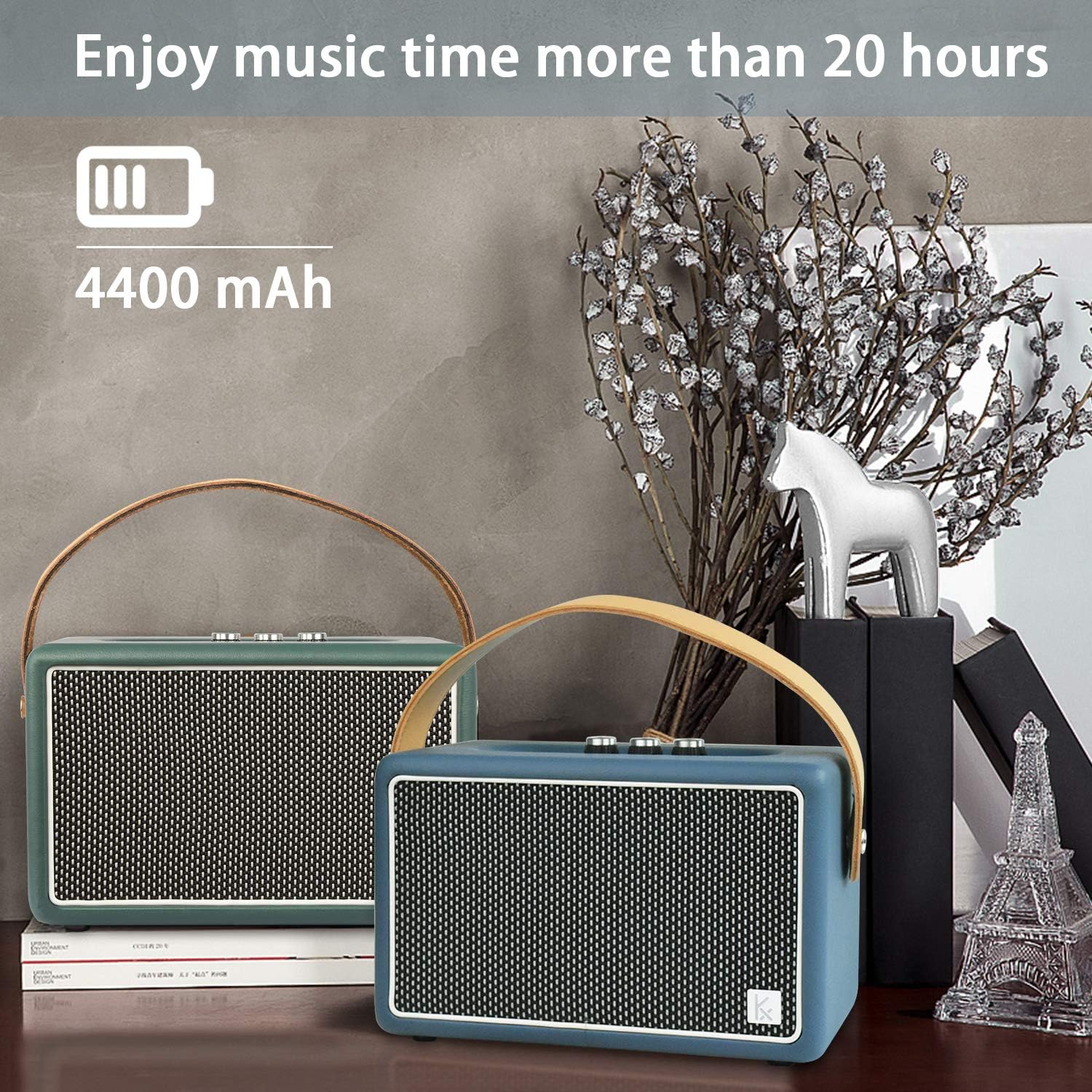- RETRO STYLED BLUETOOTH SPEAKER—Konex retro styled bluetooth speaker with rotary knob which blends modern technology and retro classic aesthetics, which matches seamlessly with the texture of your leather furniture around your house.