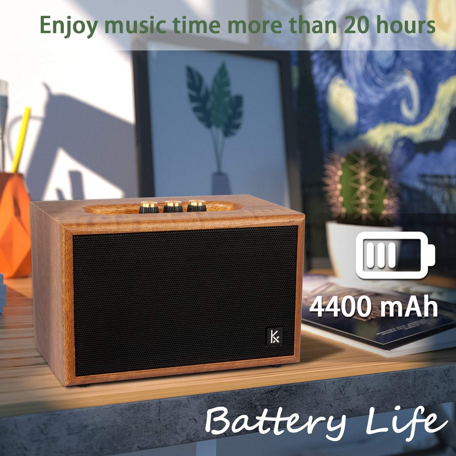 - RETRO STYLED BLUETOOTH SPEAKER—Konex retro styled bluetooth speaker with rotary knob which blends modern technology and retro classic aesthetics, which matches seamlessly with the texture of your wood furniture around your house.