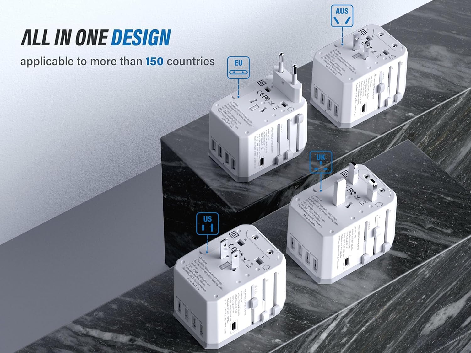 - WORLDWIDE ADAPTER - Our all-in-one adapter includes 4 different plugs that cover over 200 countries and regions, such as USA, Canada, Japan, UK, Ireland, Scotland, France, Germany, Italy, Spain, China, Australia, Argentina, New Zealand, etc. (excluding South Africa, India).